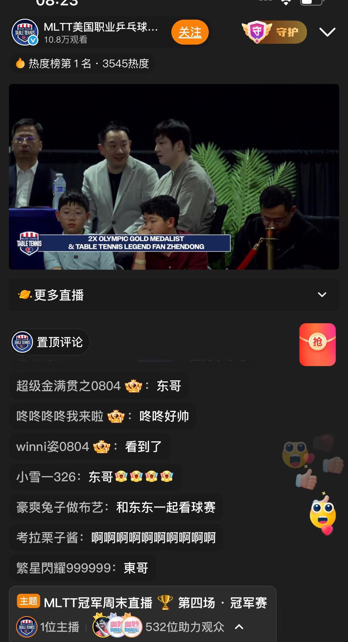 惊喜,樊振东现场观看M LTT🇺🇸职业乒乓球联赛啦!