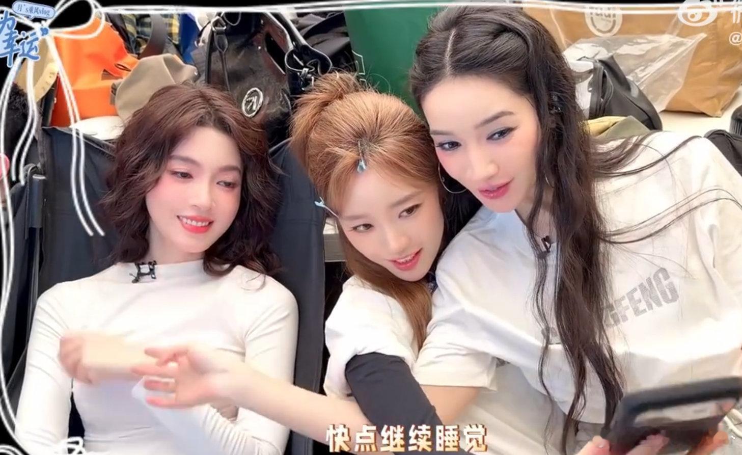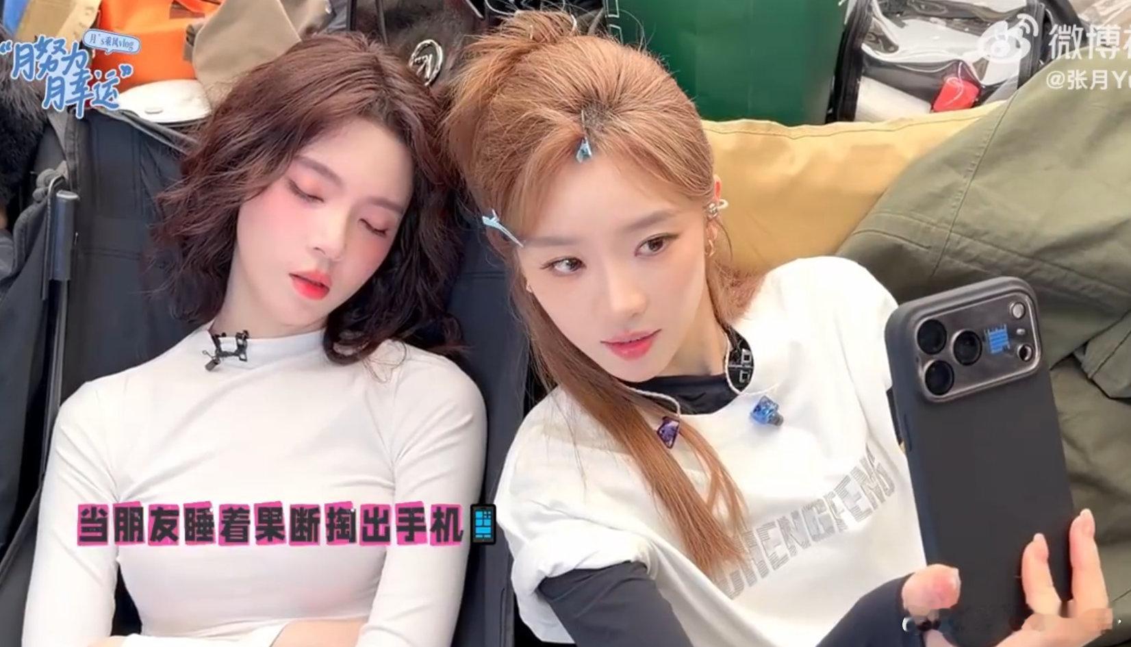 张月代斯和睡着的陈瑶合影姐姐们日常也太可爱了吧,累到吃六个馒头都没饱哈哈哈乘风2