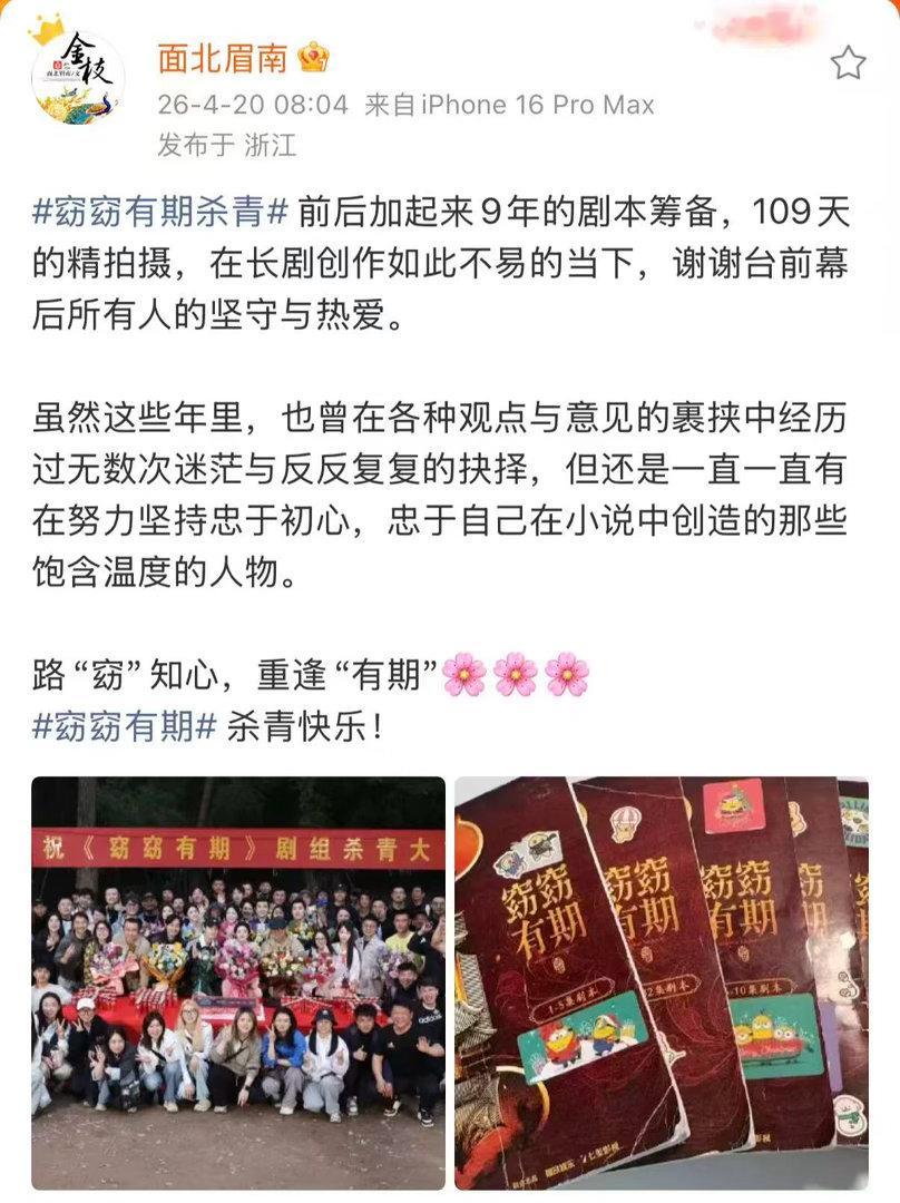 窈窈有期杀青窈窈有期剧本写了9年 原著《嫡谋》作者,同时也是《窈窈有期》编剧面北眉南发了杀青微博,其中提到这部剧的创作经历了9年的剧本筹备期…长剧市场已经这样了,竟然还有人用9年时间磨剧本…果然亲妈做编剧用心程度真的不一样…