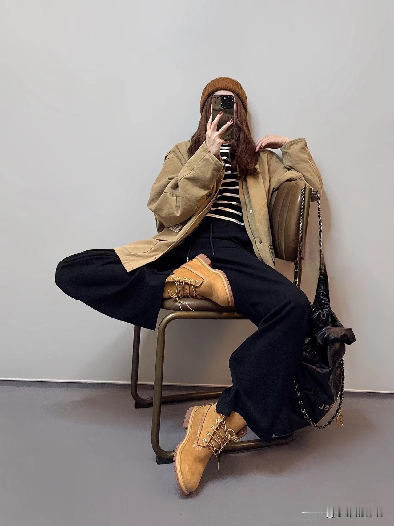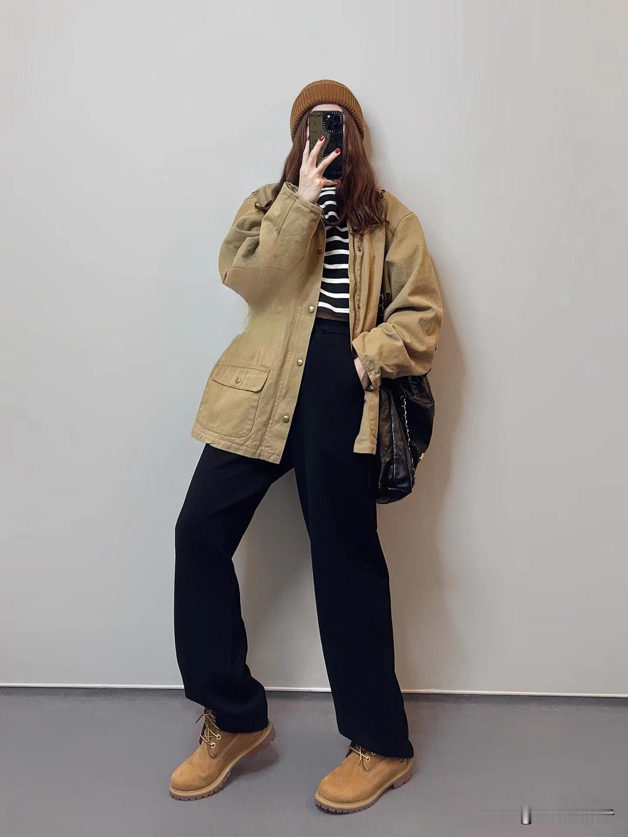 回头率超高的时髦老钱风!这组大地色系穿搭太绝了,浅咖针织Polo衫搭配藏青阔腿