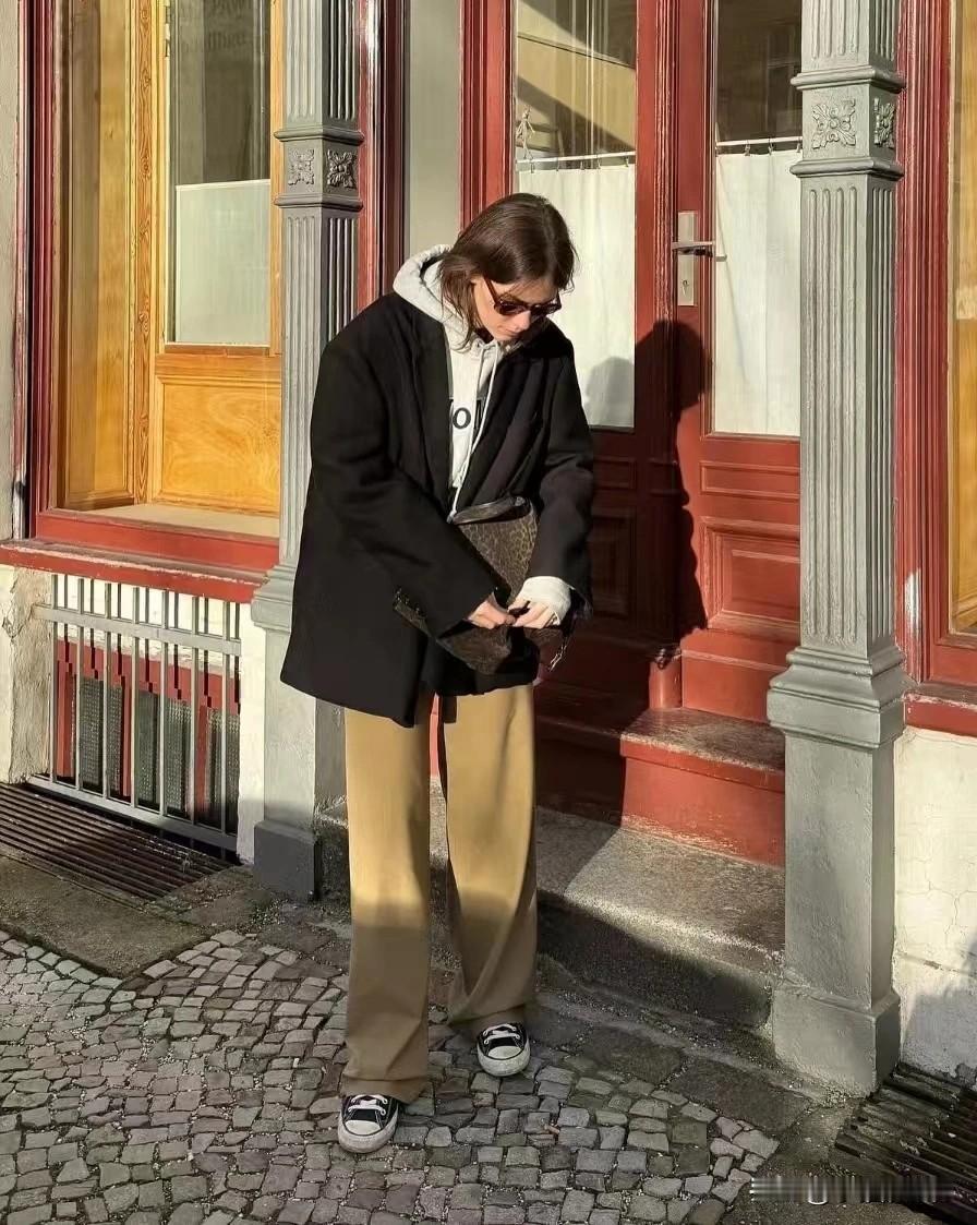 大骨架微胖女生穿衣就学她,安妮·海瑟薇的私服,简约又大气!廓形大衣、利落短款外