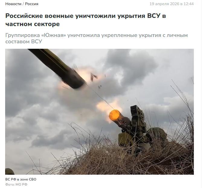 4月20日,俄罗斯媒体报道称,俄罗斯国防部通报称,南方集团军近期在康斯坦丁诺夫卡地区摧毁了乌克兰武装部队的一处防御工事。俄军旋翼无人机操作员在私人住宅区内发现一栋伪装严密的建筑物,经确认为驻有敌方人员的掩体。坐标实时传送至炮兵部队后,该掩体被精确火力摧毁。部分乌军人员转移至备用掩体,但经火力调整后,备用掩体连同其内部人员和军事装备一并被摧毁。此外,俄军还消灭了一小队敌方步兵,并利用FPV无人机定点打击摧毁了一处防御工事及两辆乌军车辆。此前,俄军动用飞机、导弹部队和火炮,对乌克兰军队的能源及交通基础设施、远程无人机储存与训练基地,以及乌军和外国雇佣兵部署点实施了综合打击。