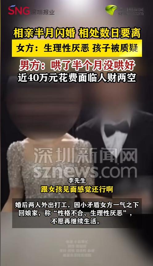 信息来源:《【00后相亲半个月闪婚】 共同生活仅几天女方称“生理性厌恶”要离婚》深圳新闻网