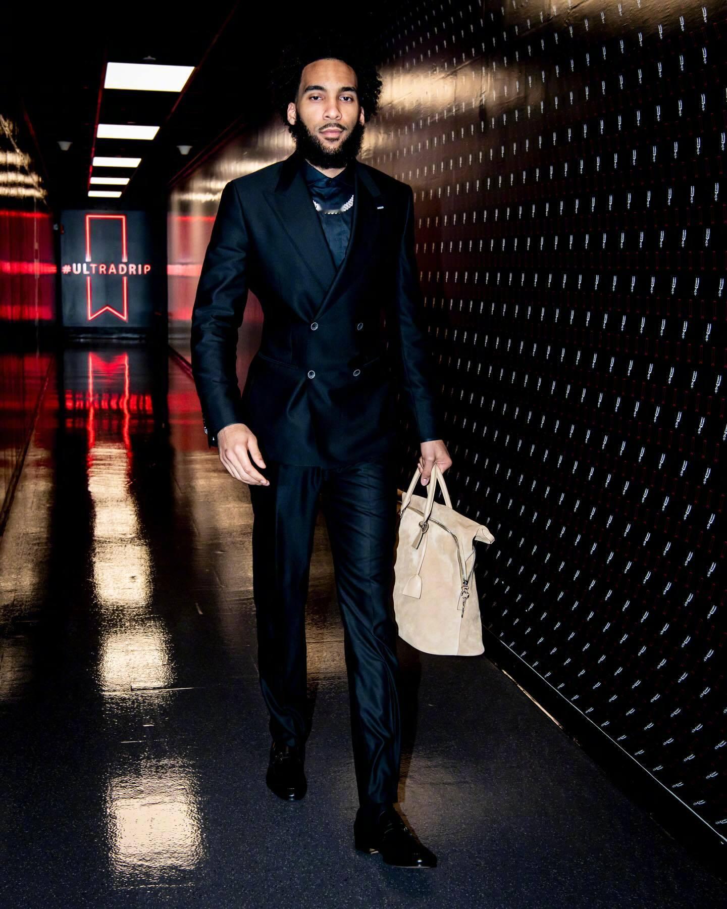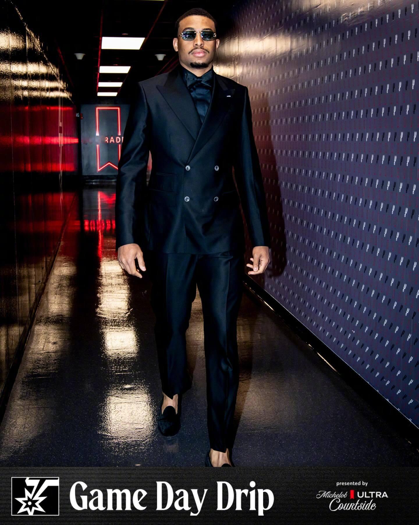 统一着装!马刺球员奥利尼克自掏腰包送全队队友定制西装,今天大伙都是一身黑色西服入场!