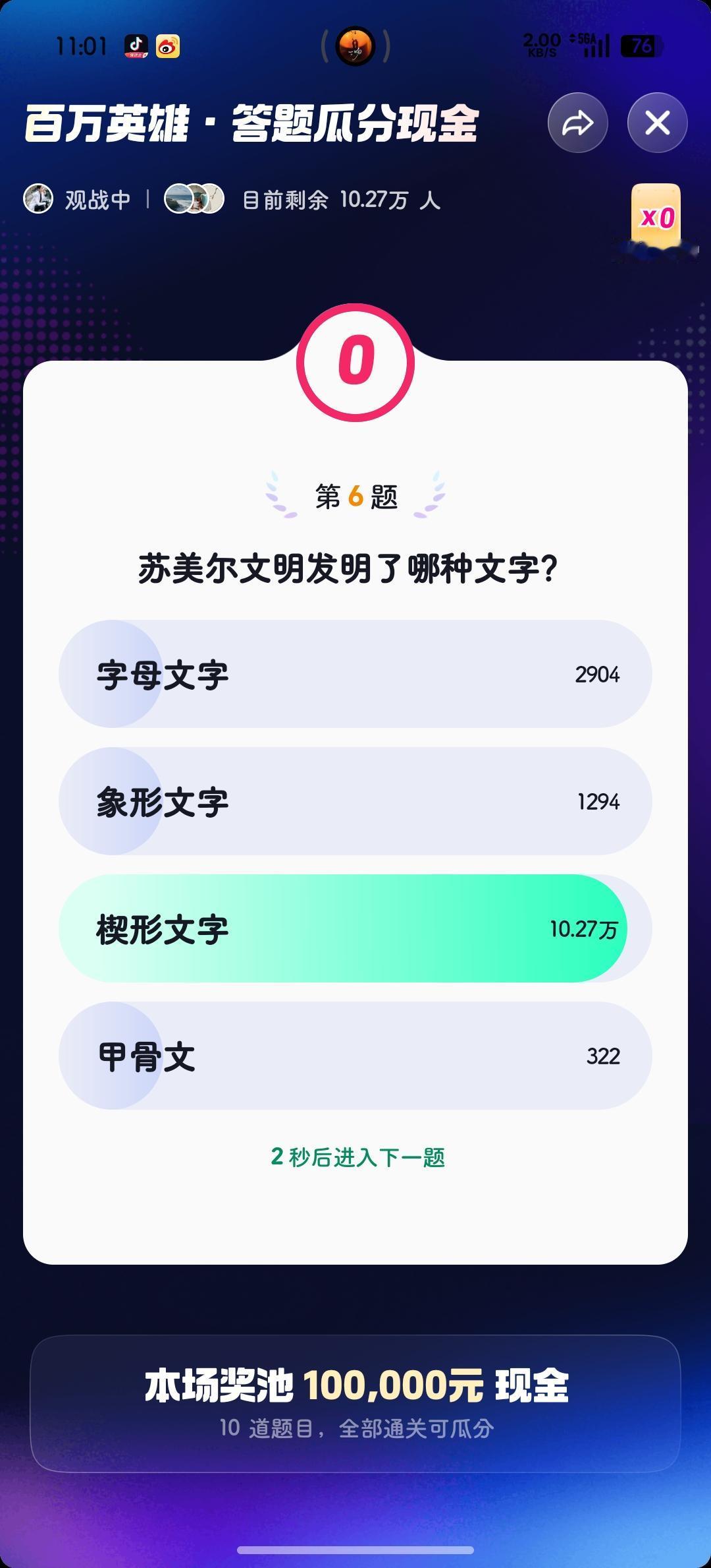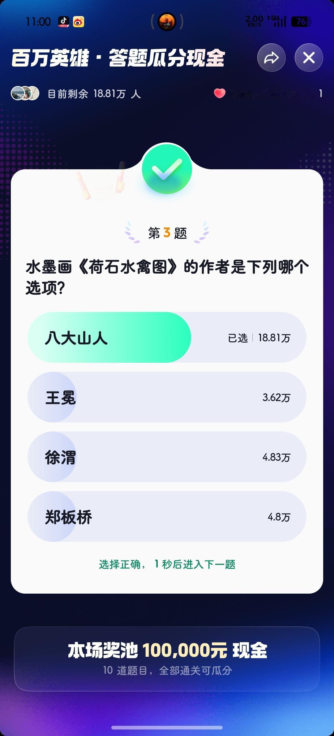 今天早场答题结束🔚