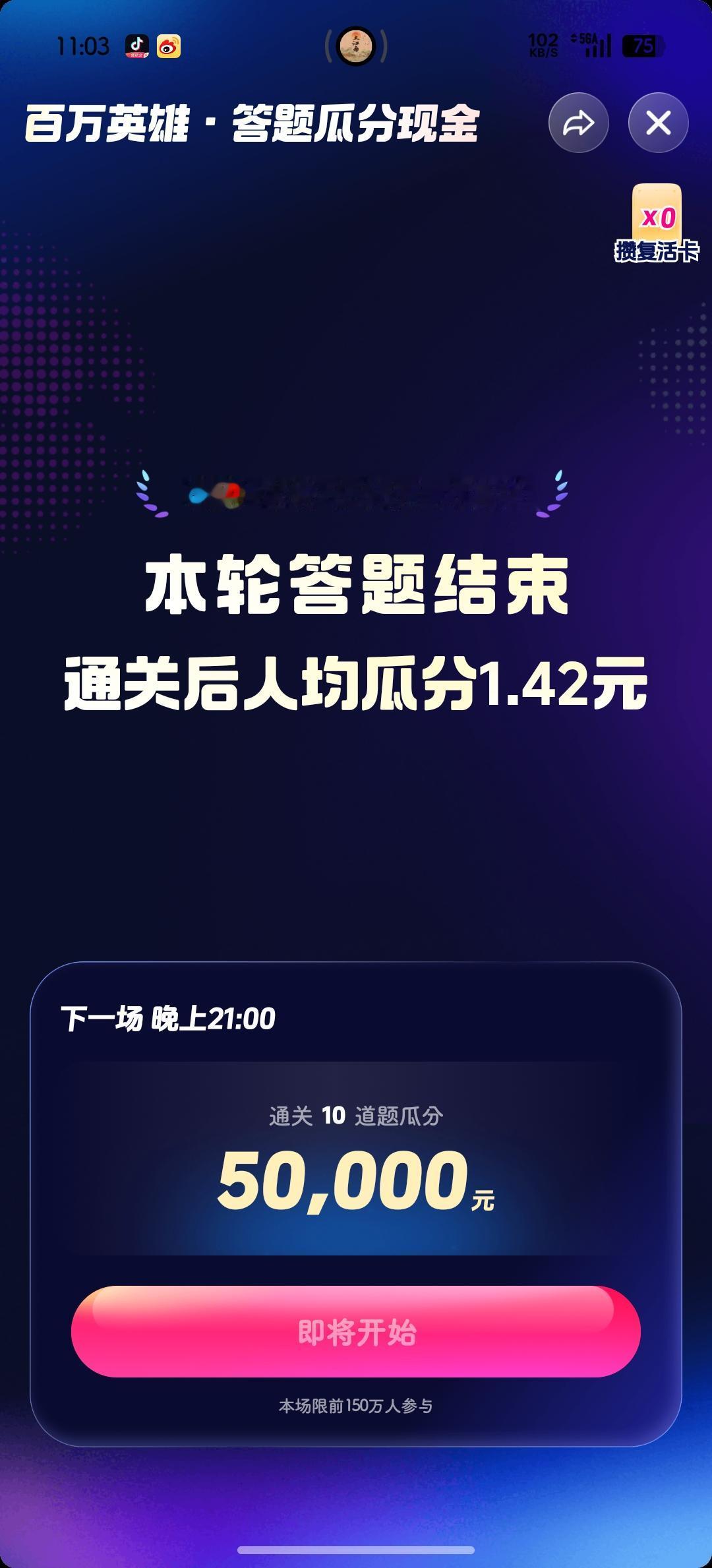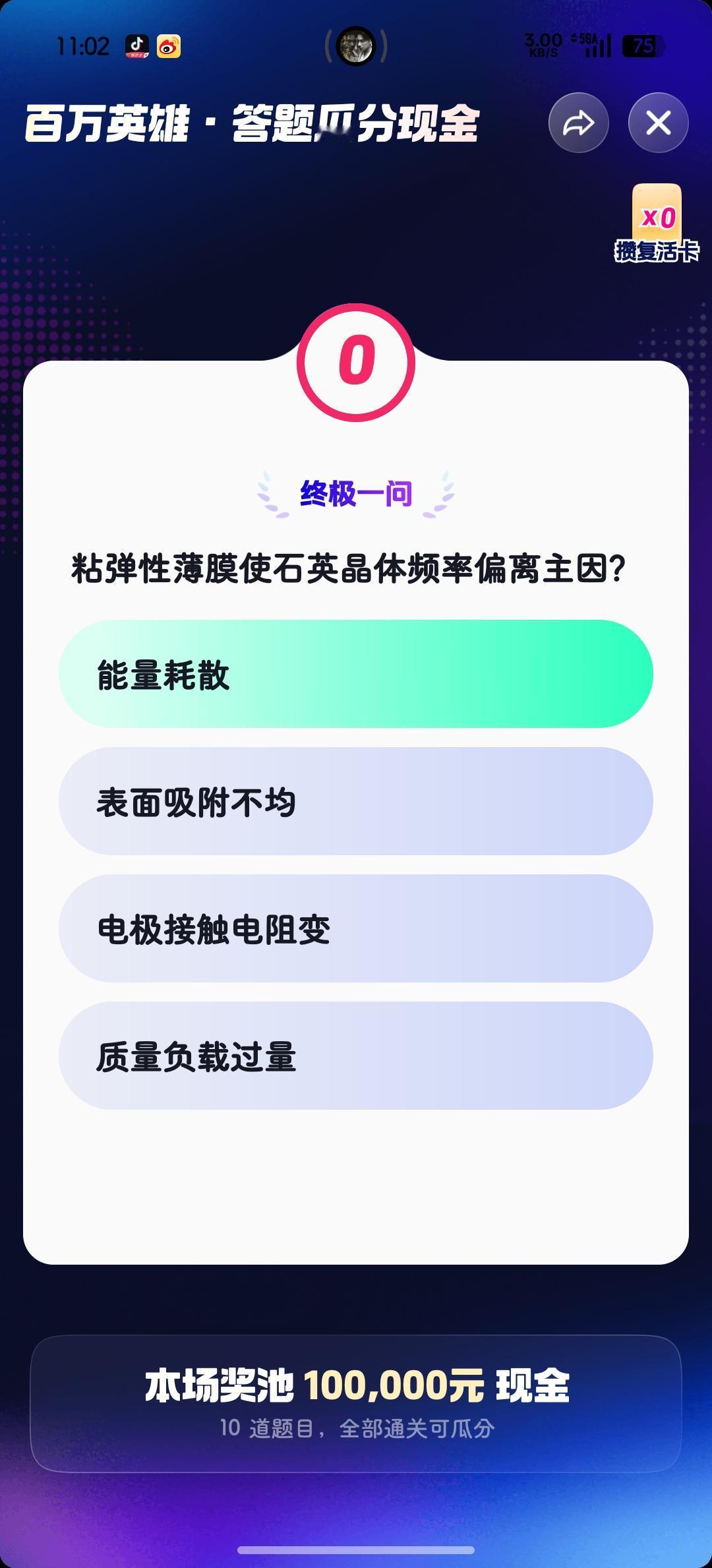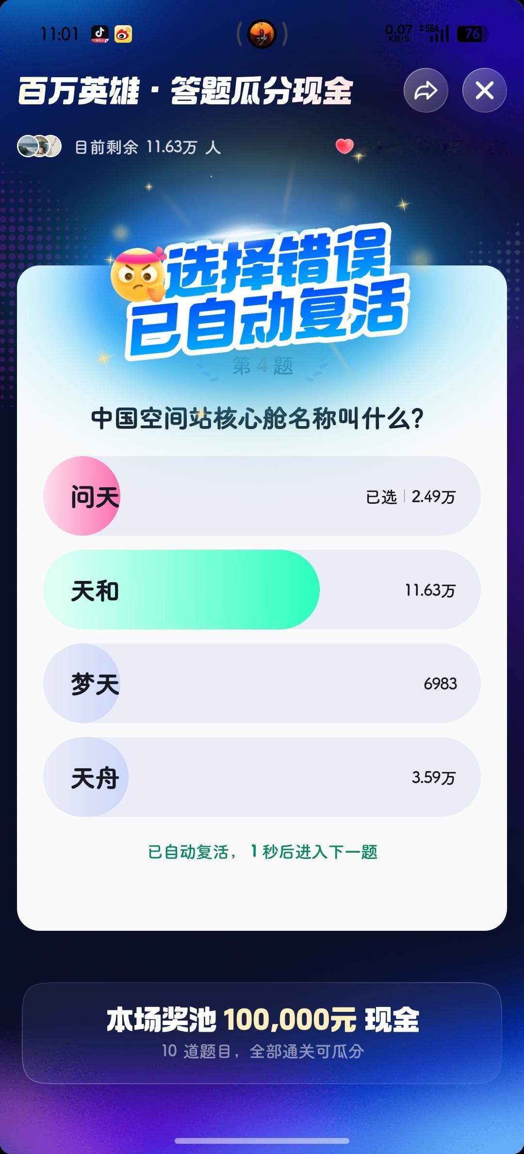 今天早场答题结束🔚 犯了跟上次一样的错误, 明明🈶复活卡一张, 🉑就是忘记