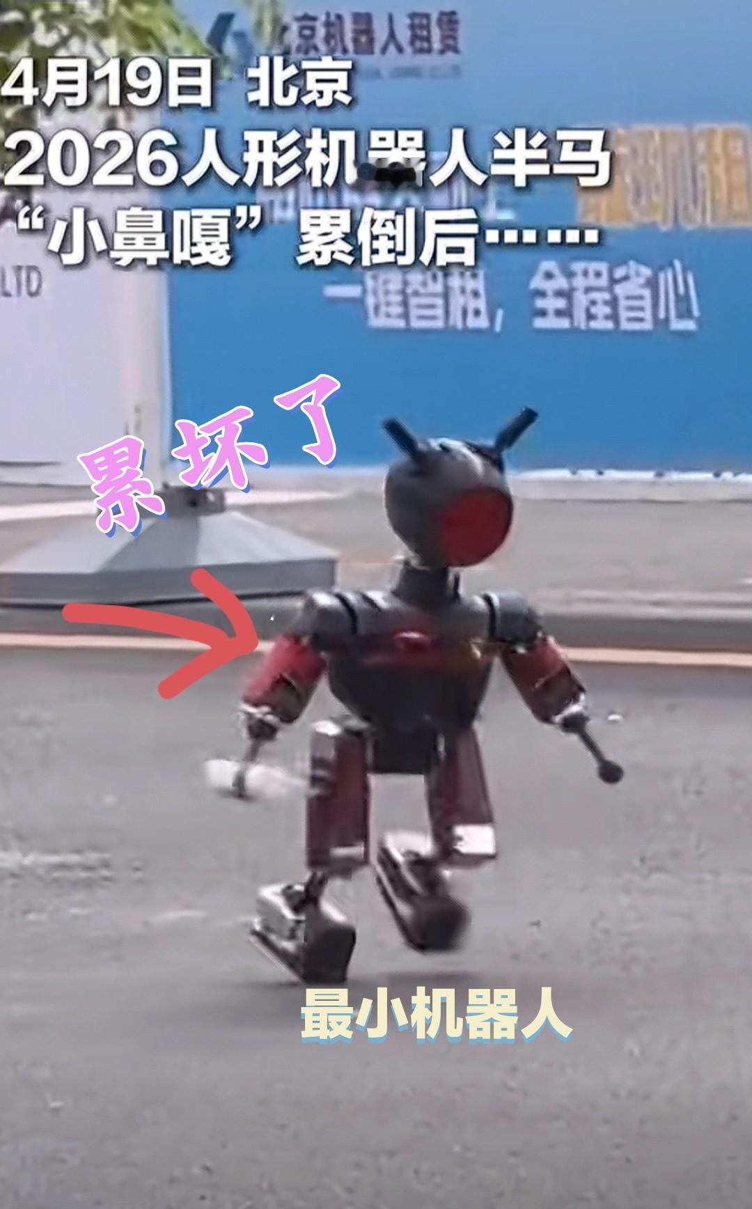 在4月19日北京2026年机器人半马比赛上,最小机器人小鼻嘎拿着奶瓶参赛,引发了观众的一片怜悯之心。