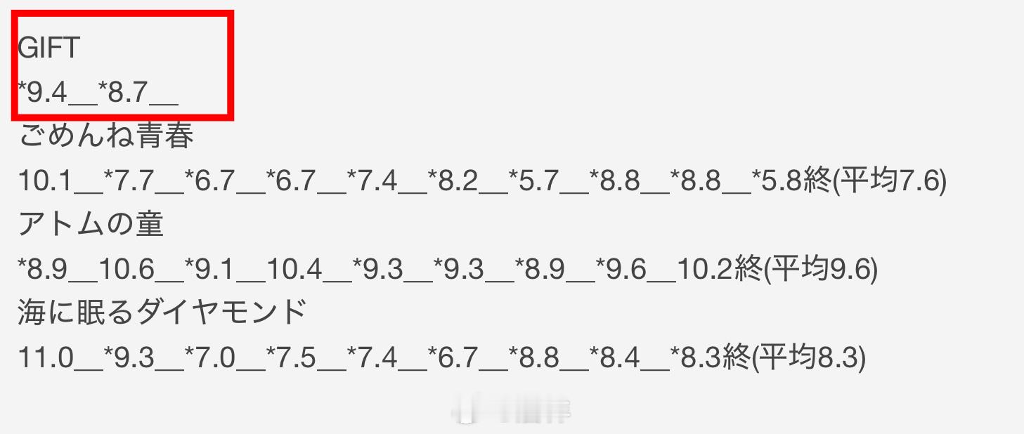 收视推移:9.4_8.7平均收视:9.05(暂定)