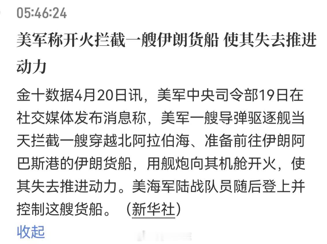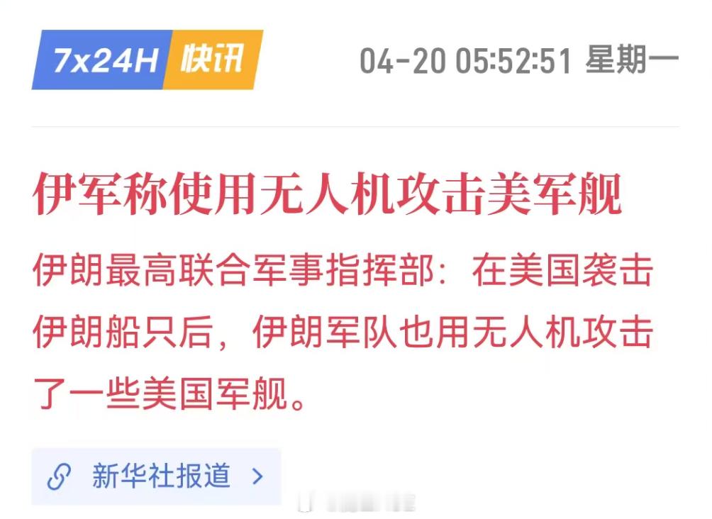 伊军称将很快报复美军美军武力拦截伊朗货船烽火问鼎计划 乍一看,美军拦截伊朗货船,伊朗发射无人机攻击美军战舰……于是,又会有声音来——我咔,停火结束了?又要打起来了?细节,往往藏在魔鬼里!看这时间,大约是咱们昨晚七八点的样子,中东天还没黑。美军战舰斯普鲁恩斯号驱逐舰,对一艘从珠海装货后驶向伊朗的货船进行了拦截,发射了舰炮打击了货船的动力系统,并最终派出特种部队登船扣押。这事午夜发酵,然后清晨时分,伊朗发射无人机,攻击了老美的战舰!然后,升级预期到这里结束,诡异的事情发生了。几个小时都过去了,针对伊朗发射无人机攻击美军战舰这个行为,美军……居然毫无反应!被伊朗打了,伊朗发射无人机攻击了美军战舰,但美军,毫无反应。按道理,如果美军故意想刺激局势打破停火然后重新开战,现在就已经可以了,伊朗已经“打破停火”了。但美军却捏着鼻子,完全沉默。这就让人哑然失笑了,搞了半天,老美拦截欺负一下无武装的货轮,不是 为了故意刺激局面打破停火,只是为了在谈判中,给伊朗施加点压力。这个时候,老美的谈判代表团,正襟危坐在巴基斯坦,望穿秋水地等着伊朗来求求它们放掉货轮。结果,没等来伊朗的求求,却等来了伊朗的无人机。估计这个点,老美方面又是懵圈的,它们只是想在谈判上玩点花活,伊朗直接掀桌子。老美被无人机攻击之后的沉默,反而证明了,它们现在就是不想打,只是想借谈判施压而已。
