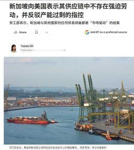 美国对新加坡的调查已经开始进入实质阶段了,现在就是摆明了说新加坡:存在强迫劳动、产能过剩。你看,这两个词汇是不是很熟悉?这是美国用来对付别人的万能利器,反正一切解释权归属美方。