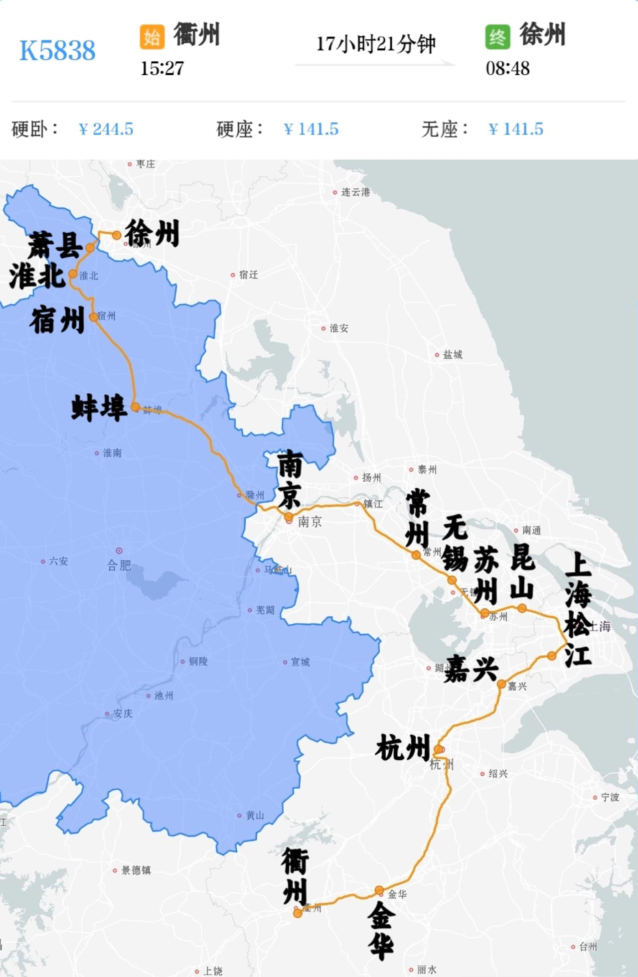 2026年4月30日-5月6日增开衢州-徐州K5838次。