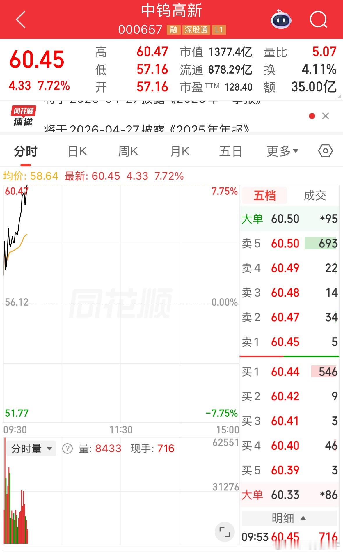 来来来 让我看看我的老铁们还在不在 看看中钨高新跟天银机电是不是很标特否
