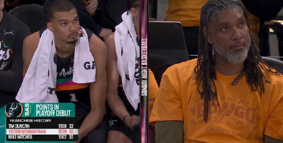 邓肯也沧桑了吧!在马刺主场迎战开拓者的比赛中发生令人唏嘘一幕:坐在观众席的两位马