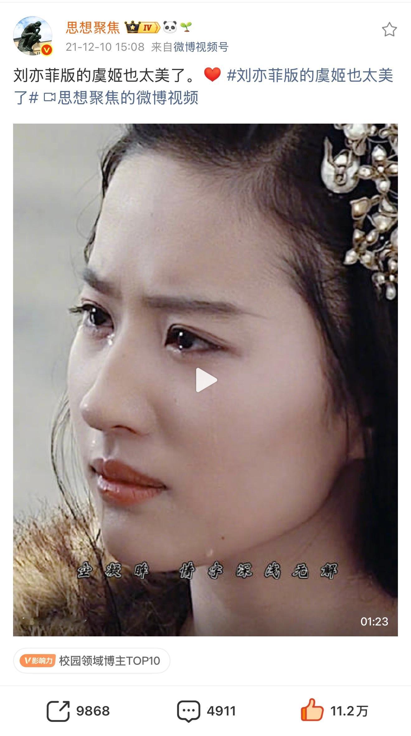 刘亦菲 lyf 虞姬 刘亦菲x虞姬x《鸿门宴传奇》抖浪薯视频耗等全平台爆火出圈部分记录“能让他死而瞑目的 只有我虞姬一人”已经全面成为虞姬代表台词了刘亦菲虞姬