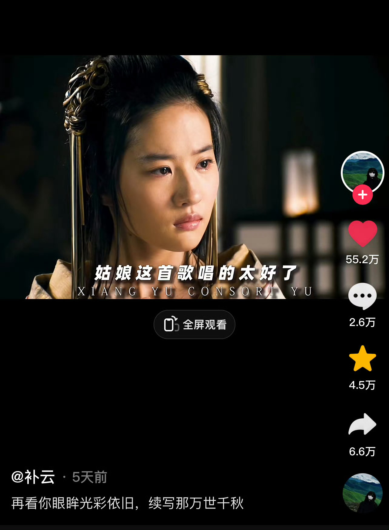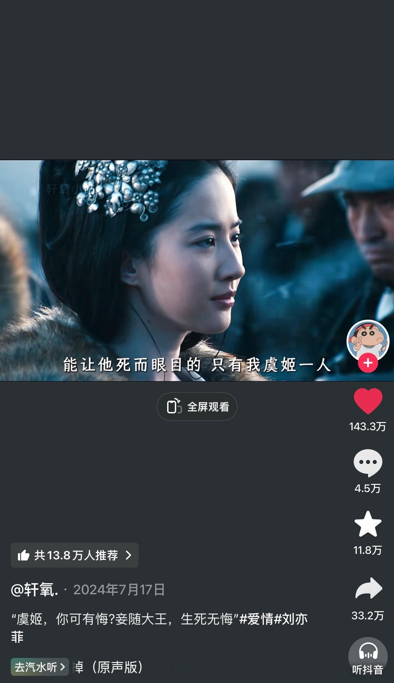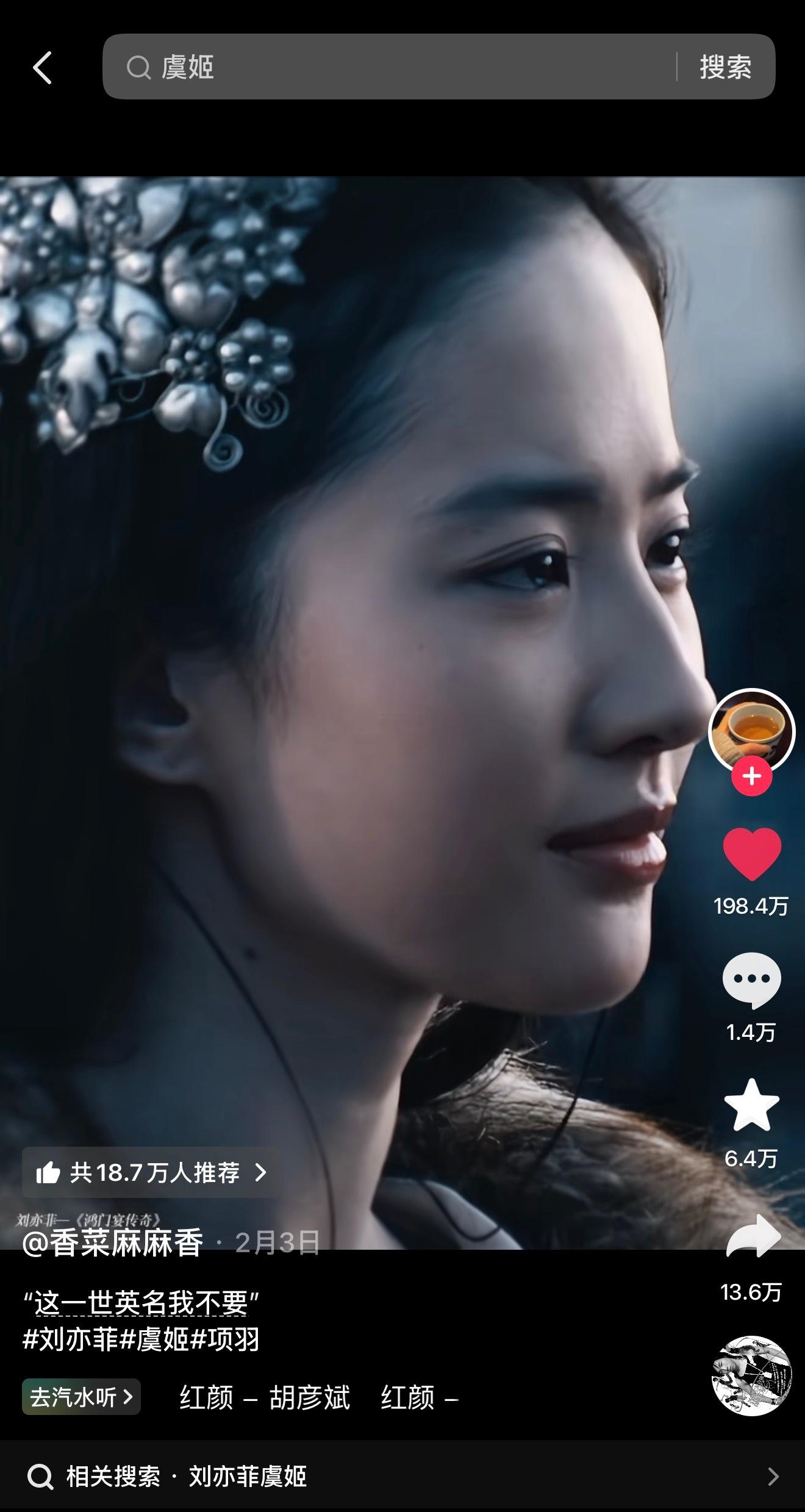 刘亦菲 lyf 虞姬 刘亦菲x虞姬x《鸿门宴传奇》抖浪薯视频耗等全平台爆火出圈部