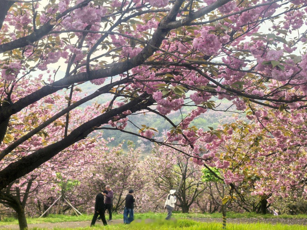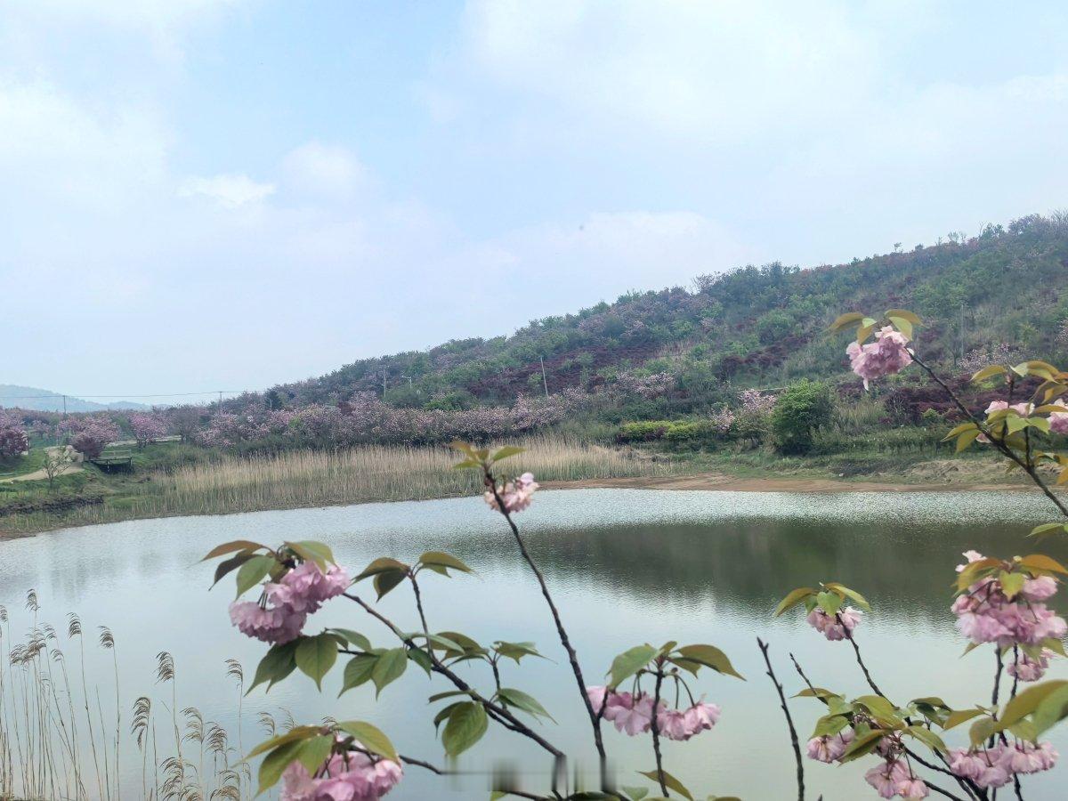 宁波海曙后湖岗山塘变身樱花网红打卡地 近日,海曙区章水镇杖锡村海拔726.8米的