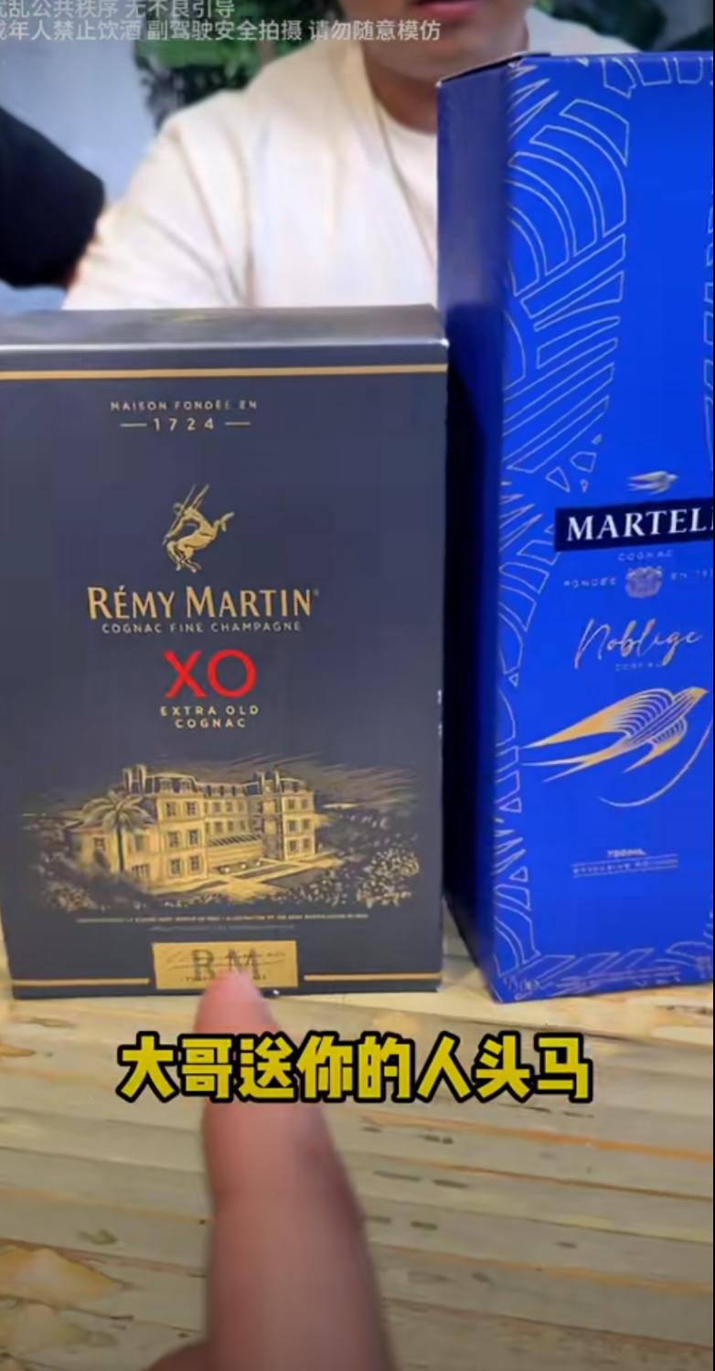 “大哥送你的人头马!”朋友的声音一落,镜头怼上去,人头马XO的礼盒看得清清楚楚。老岳一边摸着额头,一边笑着接梗:“人头马一开,好运自然来!”