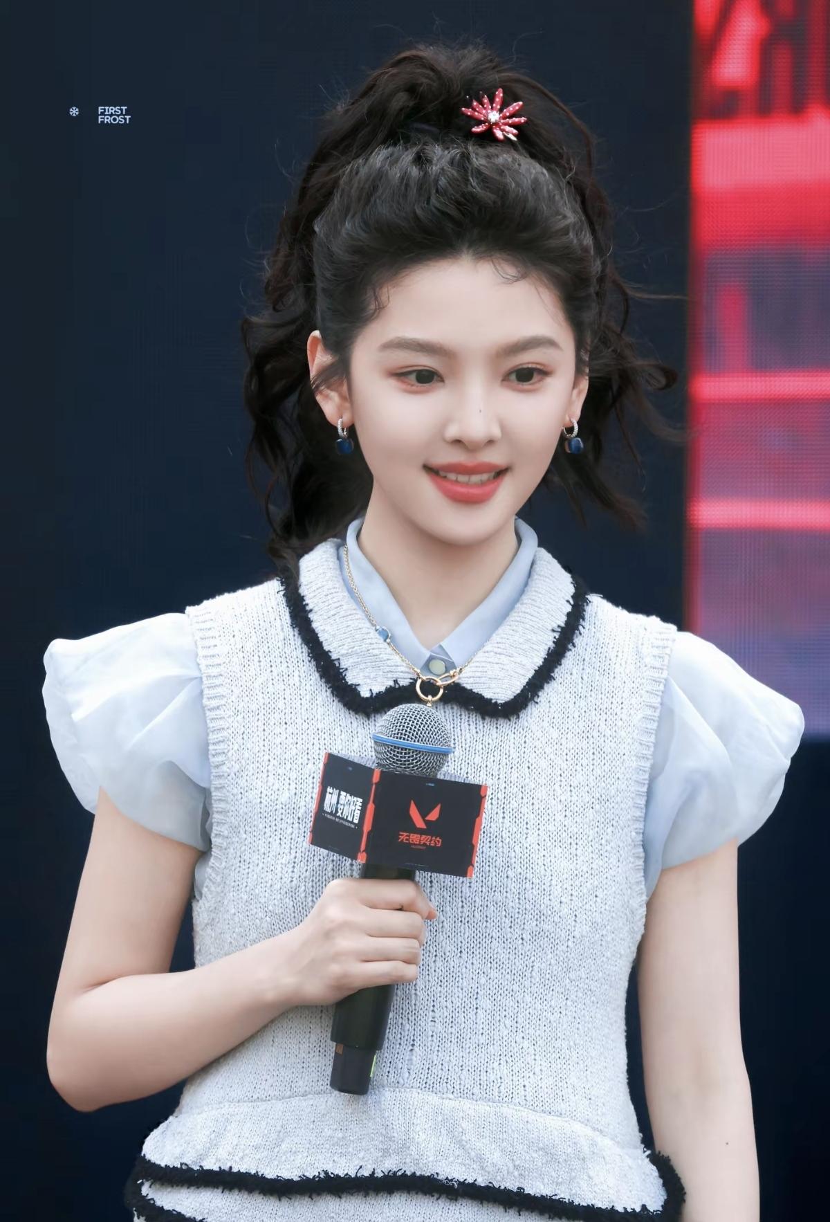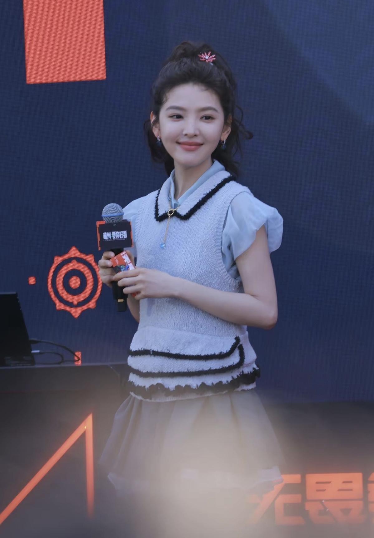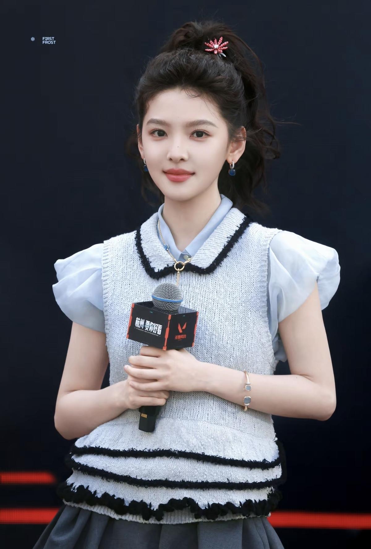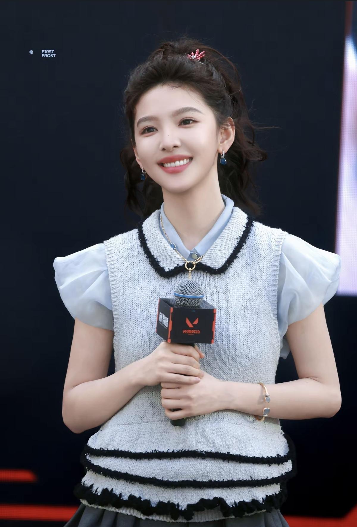镜头里的章若楠,每一帧都是心动瞬间[赞]章若楠的学院风造型,清爽又减龄,甜妹天花