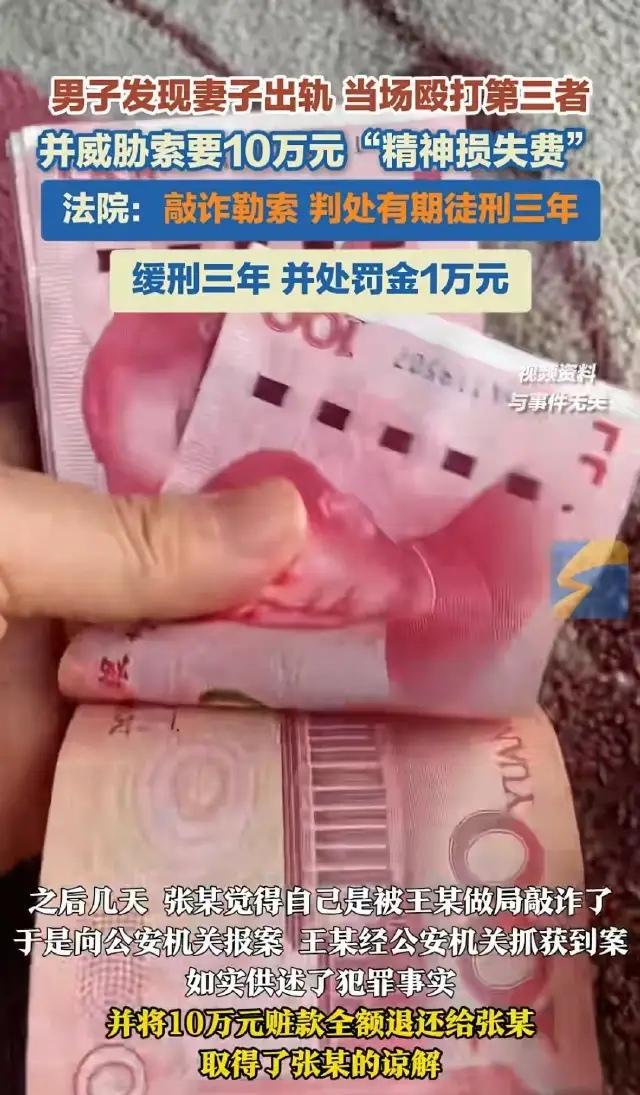 张某有错吗?当然错。破坏他人婚姻,违背公序良俗,道德上该被谴责,舆论上该被唾骂。但王某的操作,直接把自己从受害者,逼成了违法者。动手打人是故意伤害,以“告强奸、曝光隐私”要挟转账10万,性质彻底变了,这不是索要精神赔偿,是赤裸裸的敲诈勒索。
