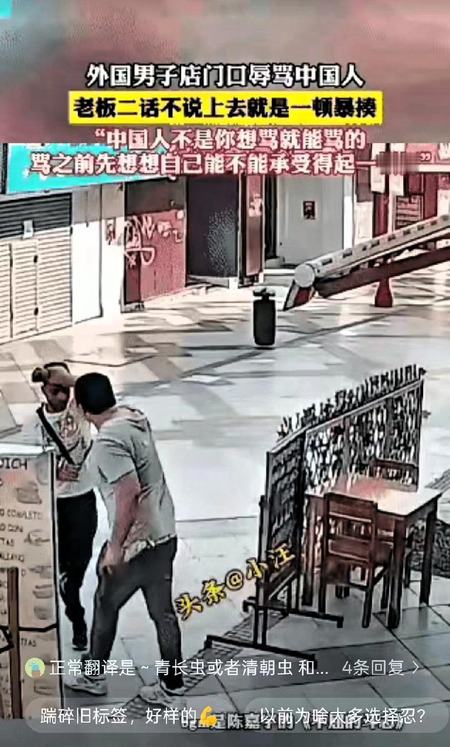 海外华人街上,一个外国男子路过中国人开的店,张嘴就是“秦腔穷”,冲着老板喊了好几遍。店主原本正在店内安静忙活,一直安分做生意,并没有与人发生争执。
