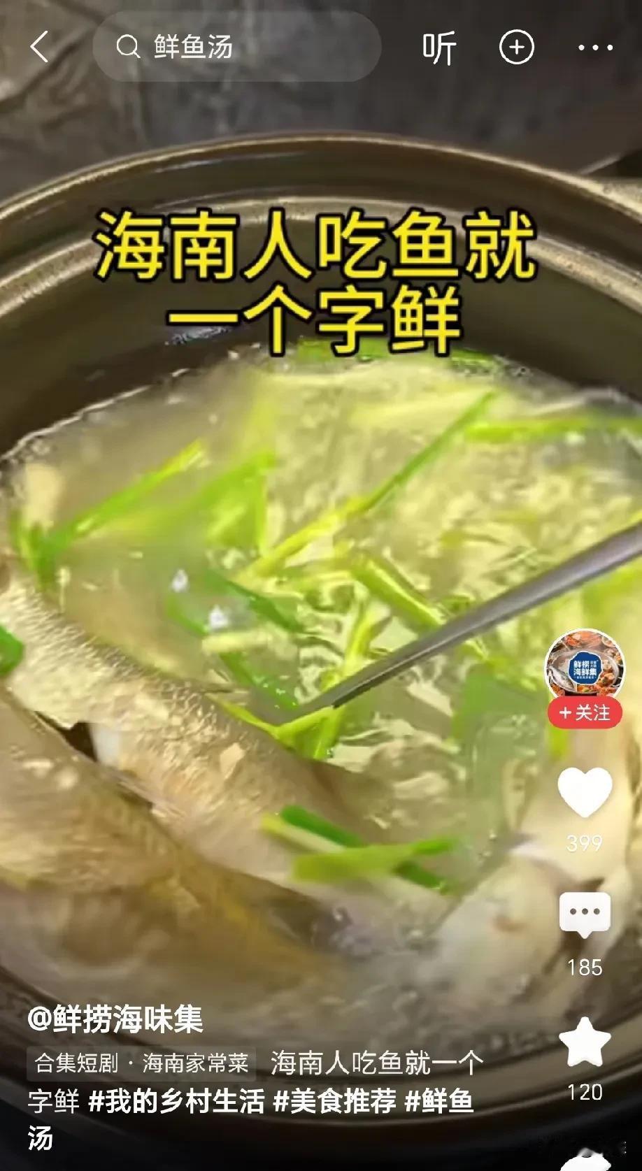 海南人嘴太硬了!刷到一条视频,博主将一锅冷水烧开冒泡,随后扔进去三条现杀的小鱼,紧接着加入一勺猪油,撒上一把葱段,一小勺盐,味精都不放,就大火咕嘟咕嘟炖上了几分钟,一锅鲜美的鱼汤就这样出锅了!