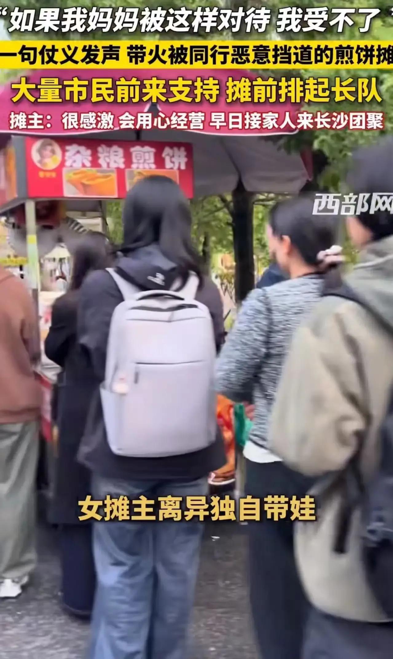 近日,长沙一位女摊主的故事在网络上引起了广泛关注。她离异后,独自带着孩子摆摊卖煎饼,生活本就不易,却还要面对同行的恶意竞争。有同行竟然故意挡在她的摊位前,试图阻止她做生意。这一行为被网友拍下并发帖打抱不平,迅速引发了热议。许多网友纷纷表示:“如果我妈妈被这样对待,我受不了!”这句话道出了大家的心声,也激发了市民们的正义感。于是,大量市民自发前往煎饼摊排队支持,用实际行动为女摊主加油打气。这一幕幕暖心的场景,让人感受到了社会的正能量。网友们纷纷称赞,这才是网络存在的意义,能够传递正能量,让更多的人看到人性的美好。