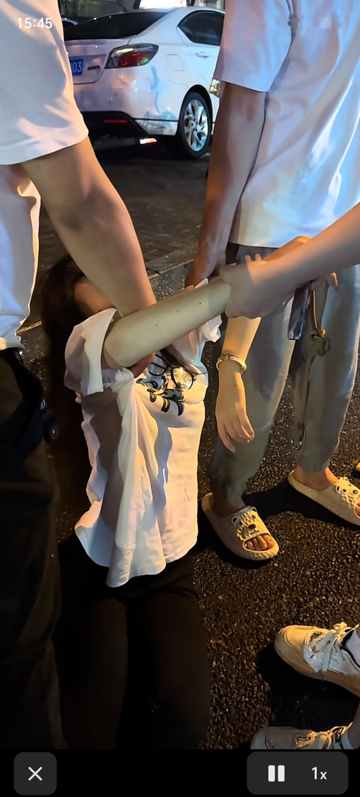 女孩子运气还不错,碰到了几个好心的年轻男女,正好晚上出来玩,正好碰见了倒地的女孩子。善心的两个男子试图把她带到安全的地方。