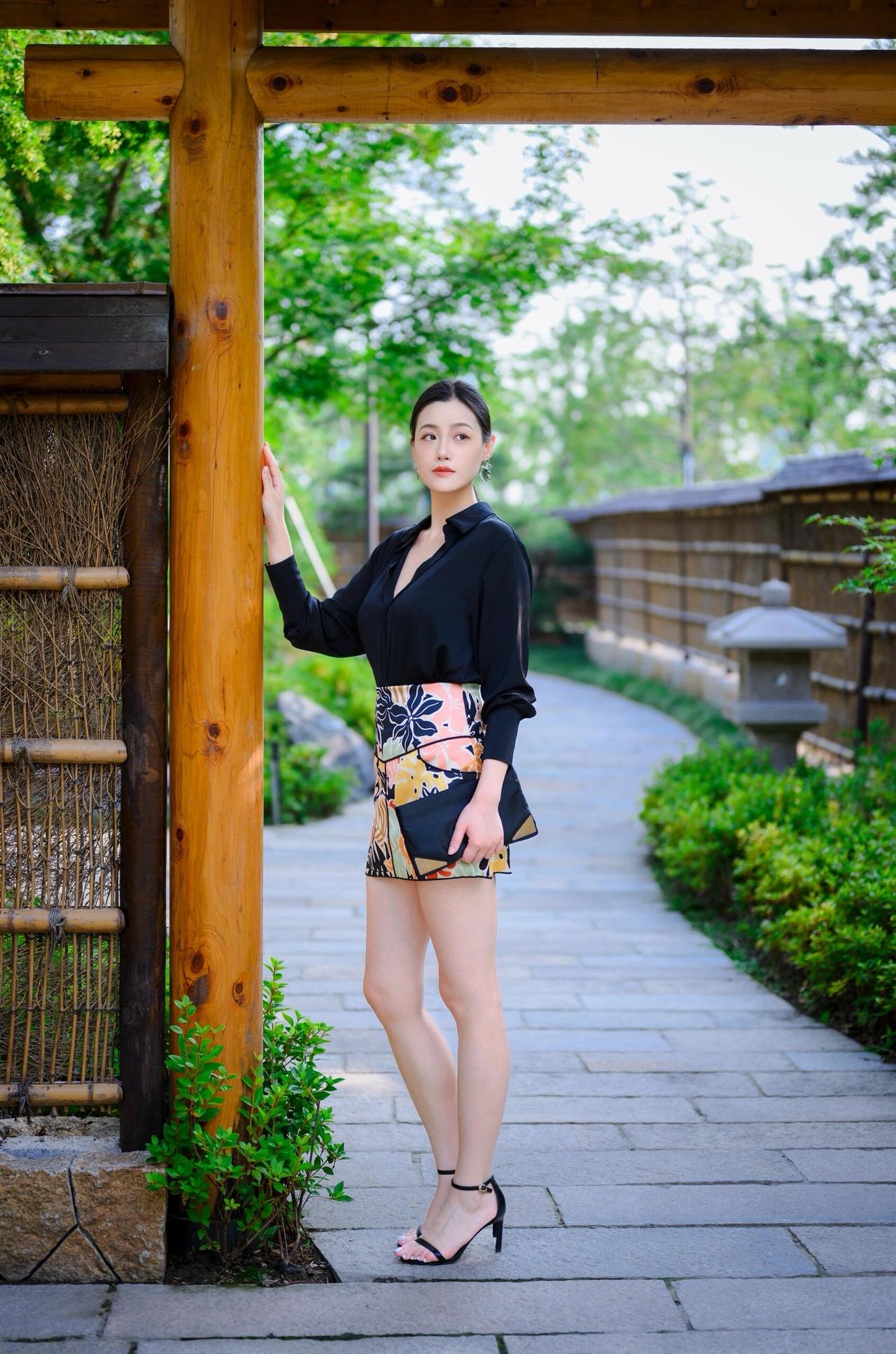 网纱疏影,透出从容。格纹叠韵,藏锋于柔。茶烟袅袅,心随境安。高跟轻点