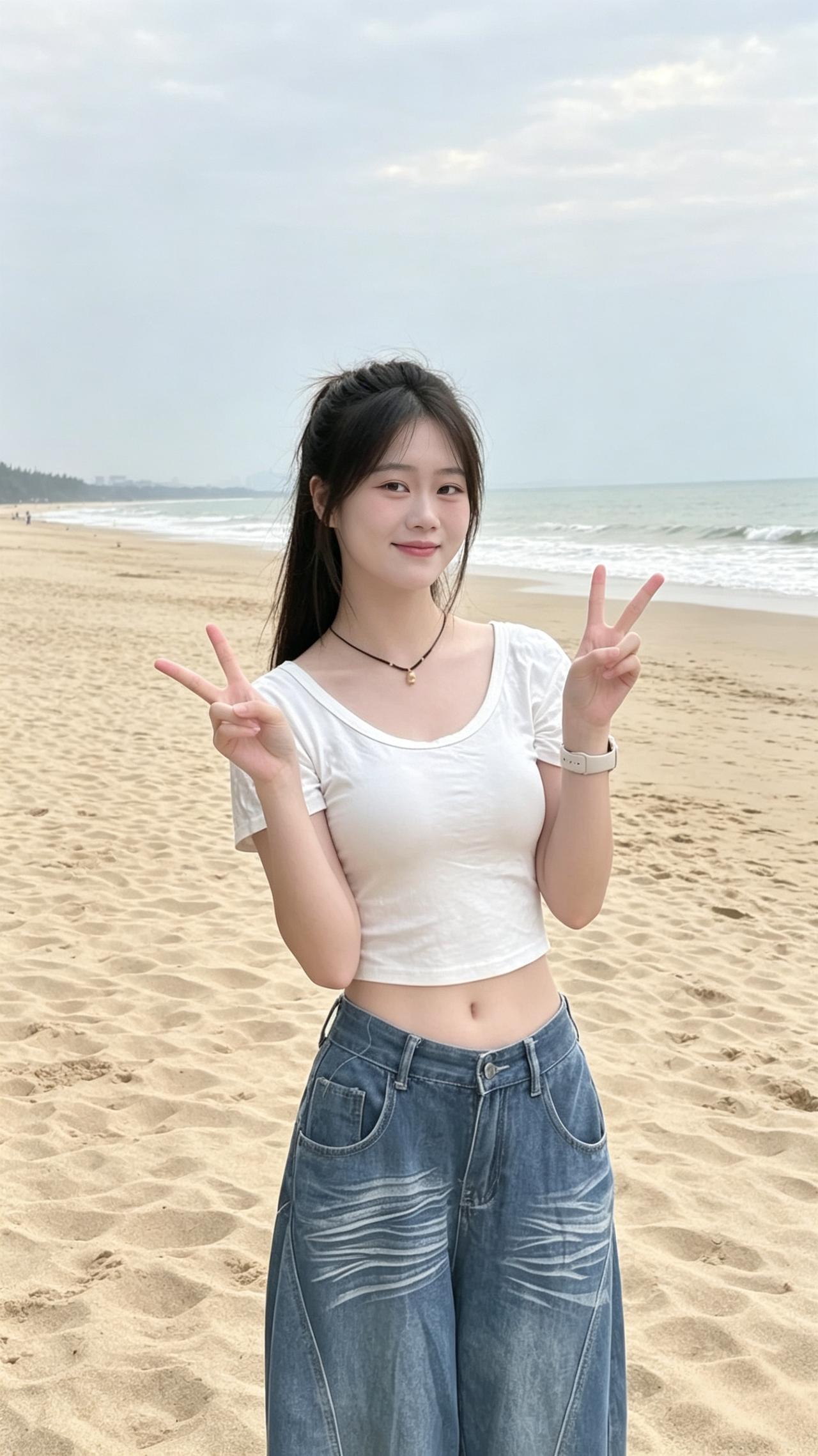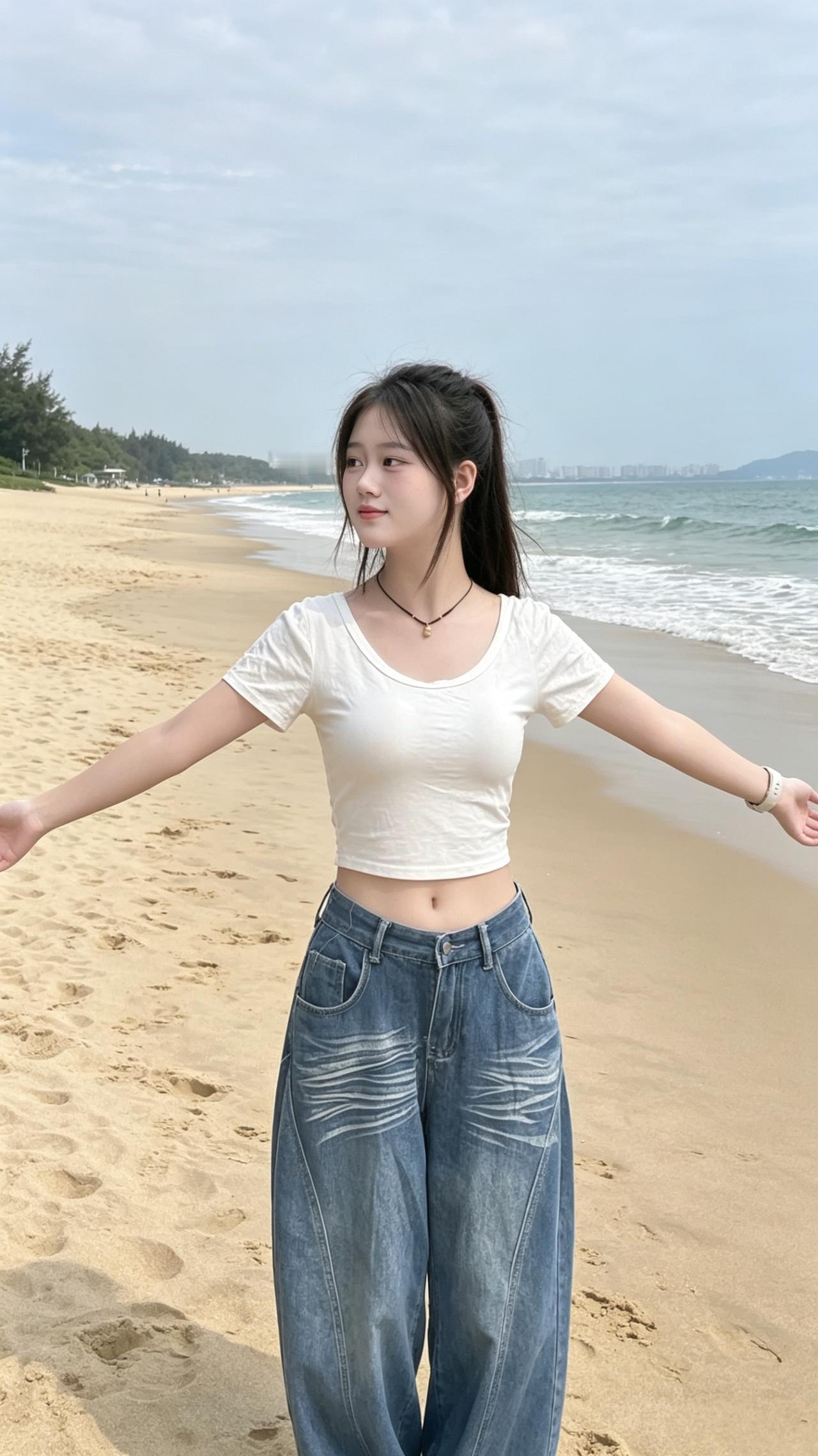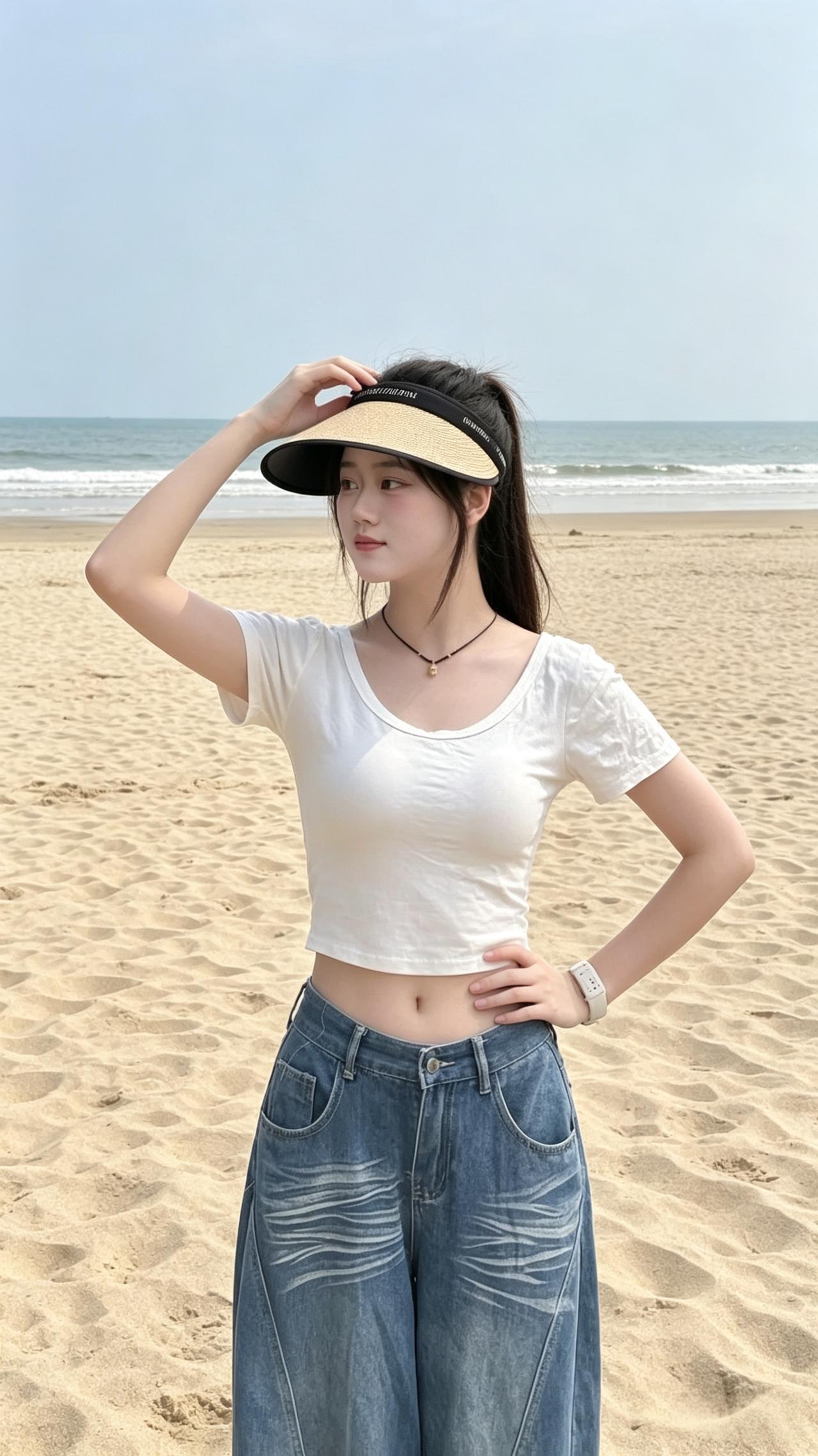 海边休闲时光,优雅穿搭,轻松自在海边穿搭风格姿势各异,你觉得那种姿不雅?