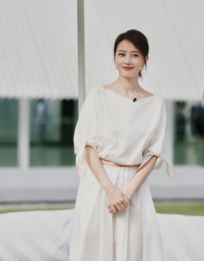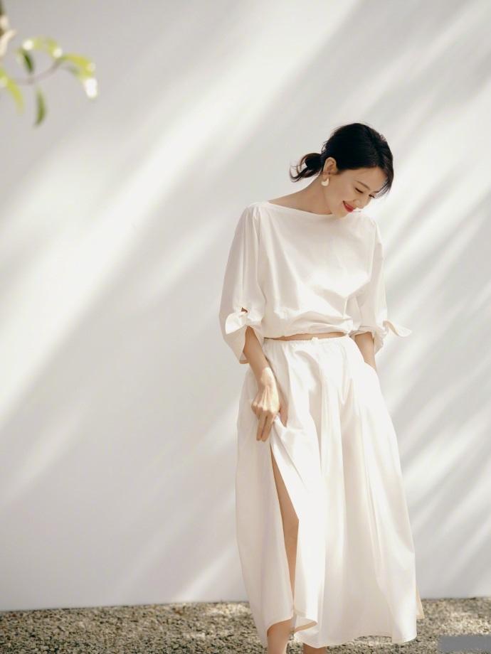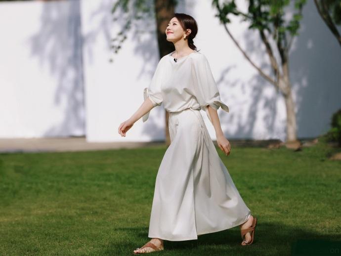 她搭配白色的衣服不仅显年轻,还有种光彩照人的气质,真的是很美,也很有大牌明星范儿。