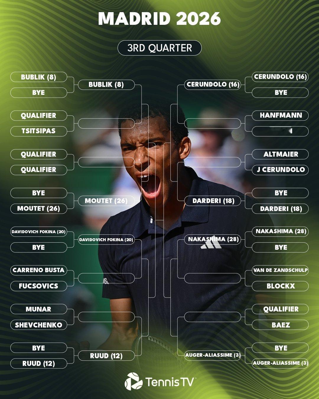 2026赛季ATP马德里大师赛公布男单正赛签表,中国选手张之臻首轮迎战科普里瓦,
