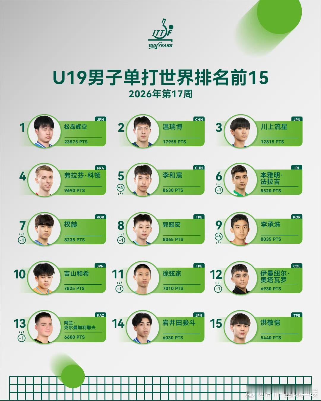 3. U19男单(前15)