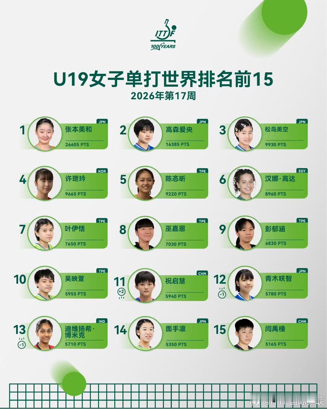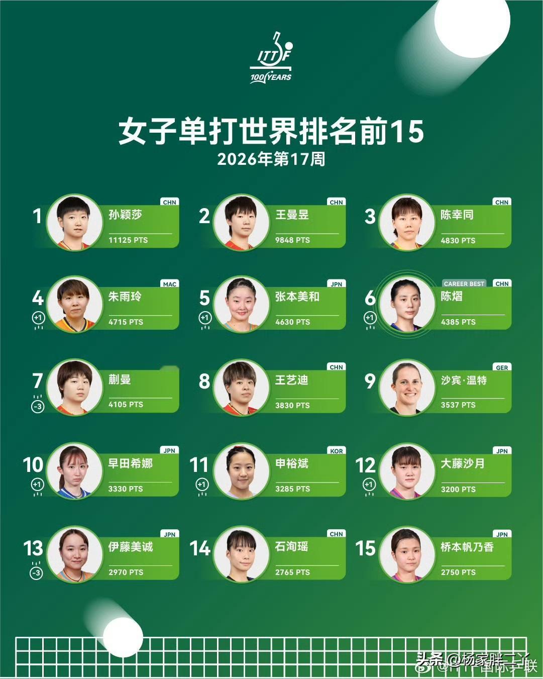 - 现状:国乒几乎无优势,日本+中国台北垄断前十。