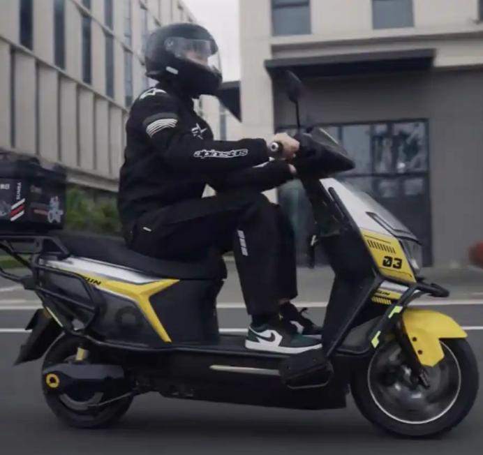 全职高频跑单(日均150km+),直接冲新日龙骑-狂鲨!2000W大功率电机,72V50Ah电池,续航能到200km,双电并行彻底告别续航焦虑,250kg载重能放双配送箱,盘古车架高速不飘,专为外卖定制。