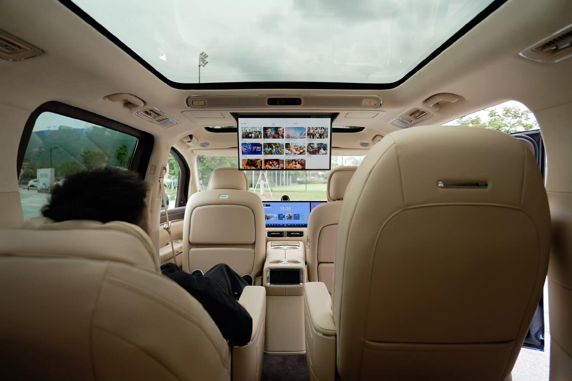 鸿蒙智行的旗舰MPV智界V9内饰来了,二排旋转与三排对坐,中间放着香槟,非常惬意啊!智界鸿蒙智行