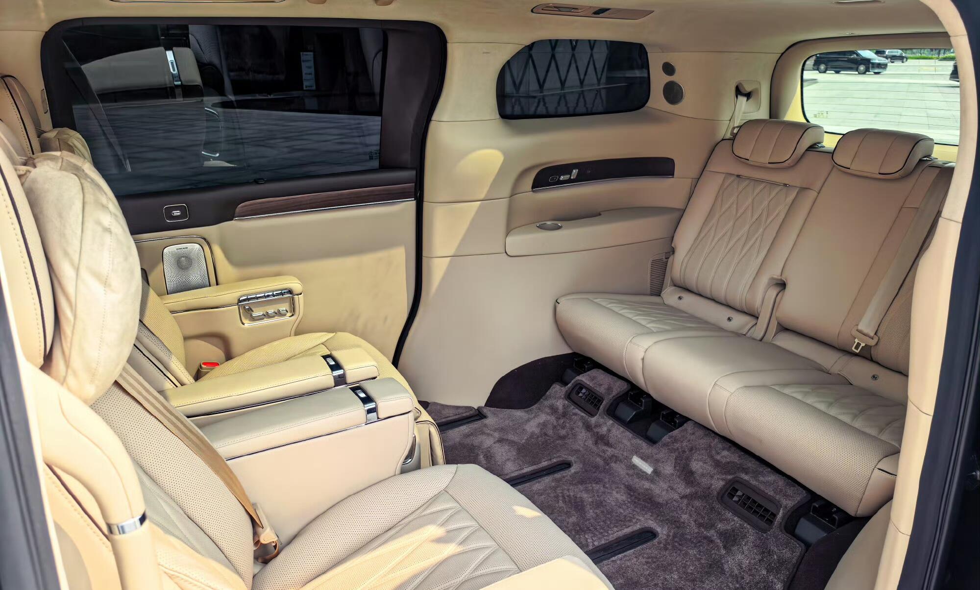 鸿蒙智行的旗舰MPV智界V9内饰来了,二排旋转与三排对坐,中间放着香槟,非常惬意