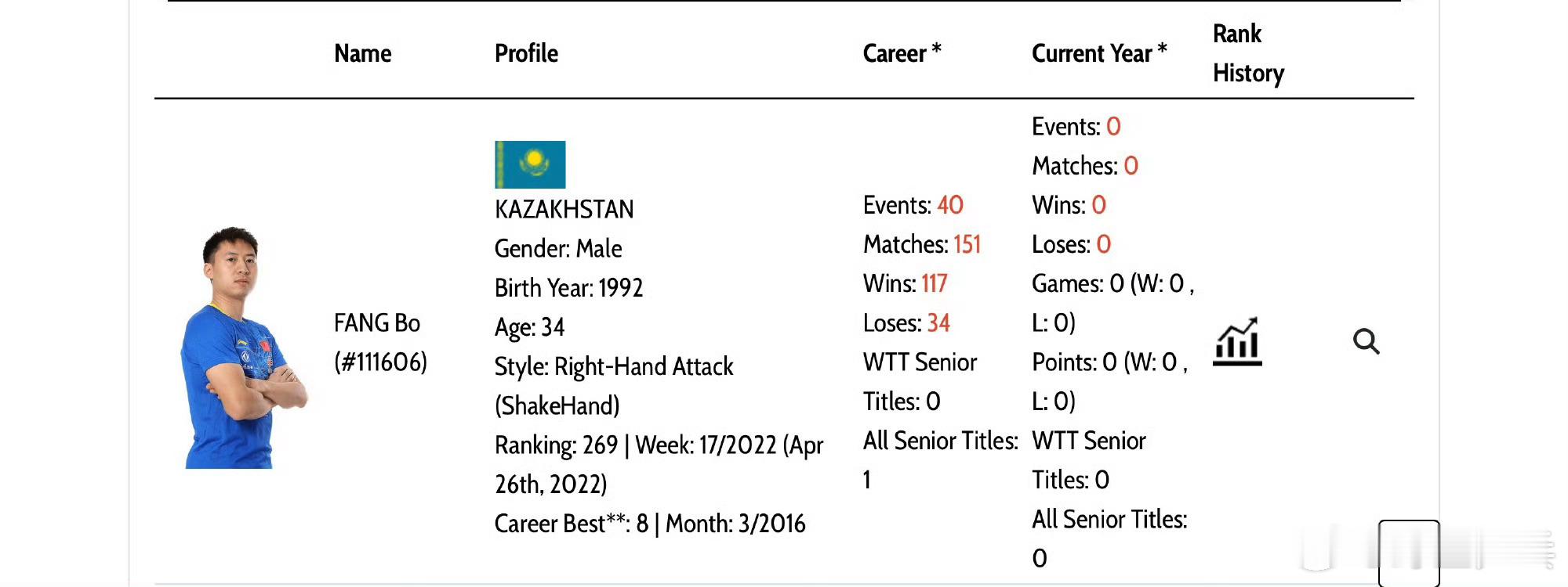 据悉,方博已经恢复训练1个月。除了征战WTT赛事,方博表示自己还会参加乒超联赛。 方博以哈萨克斯坦球员身份注册WTT