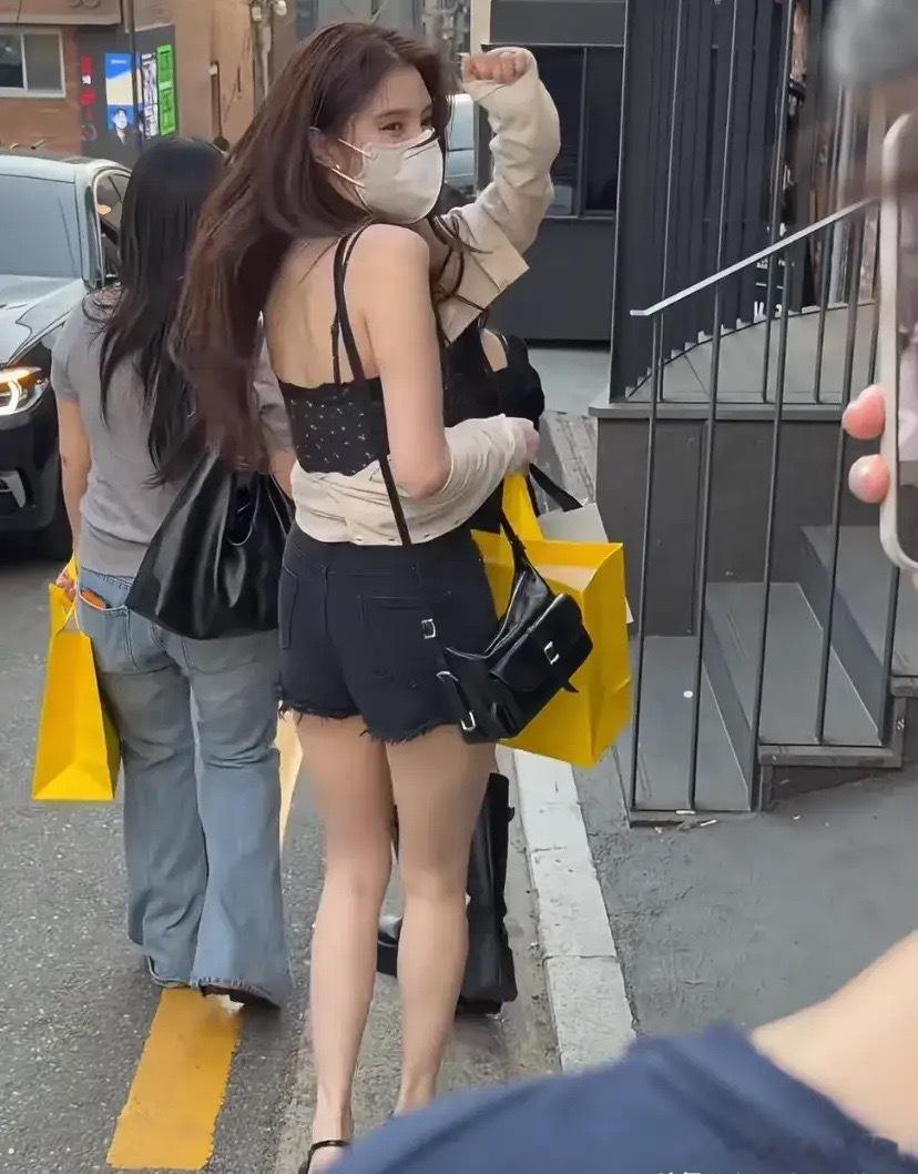 韩素希逛街被偶遇,她穿着背心短裤,双腿又白又长人看着都香香的!