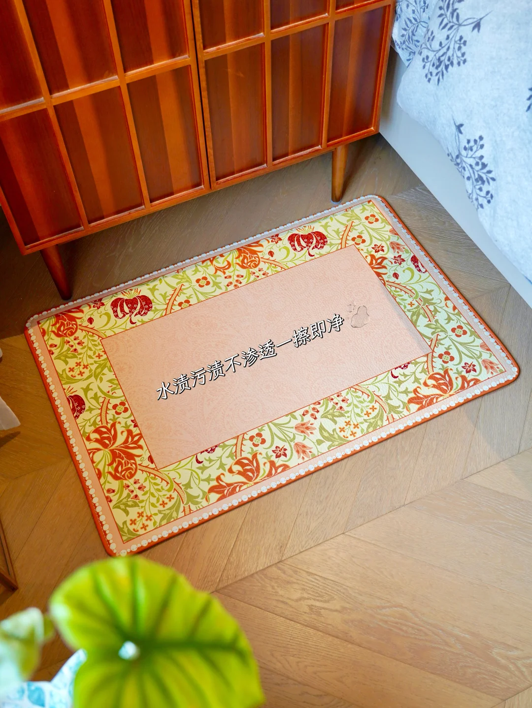 水池边再铺上像是量身定制的塔山牛皮地垫