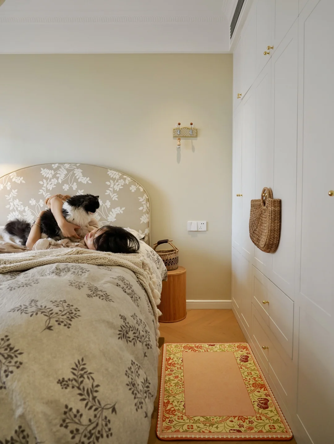 把猫猫留在她的床边~