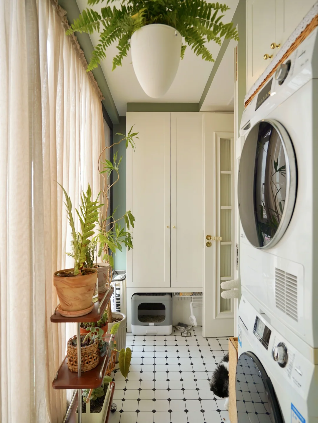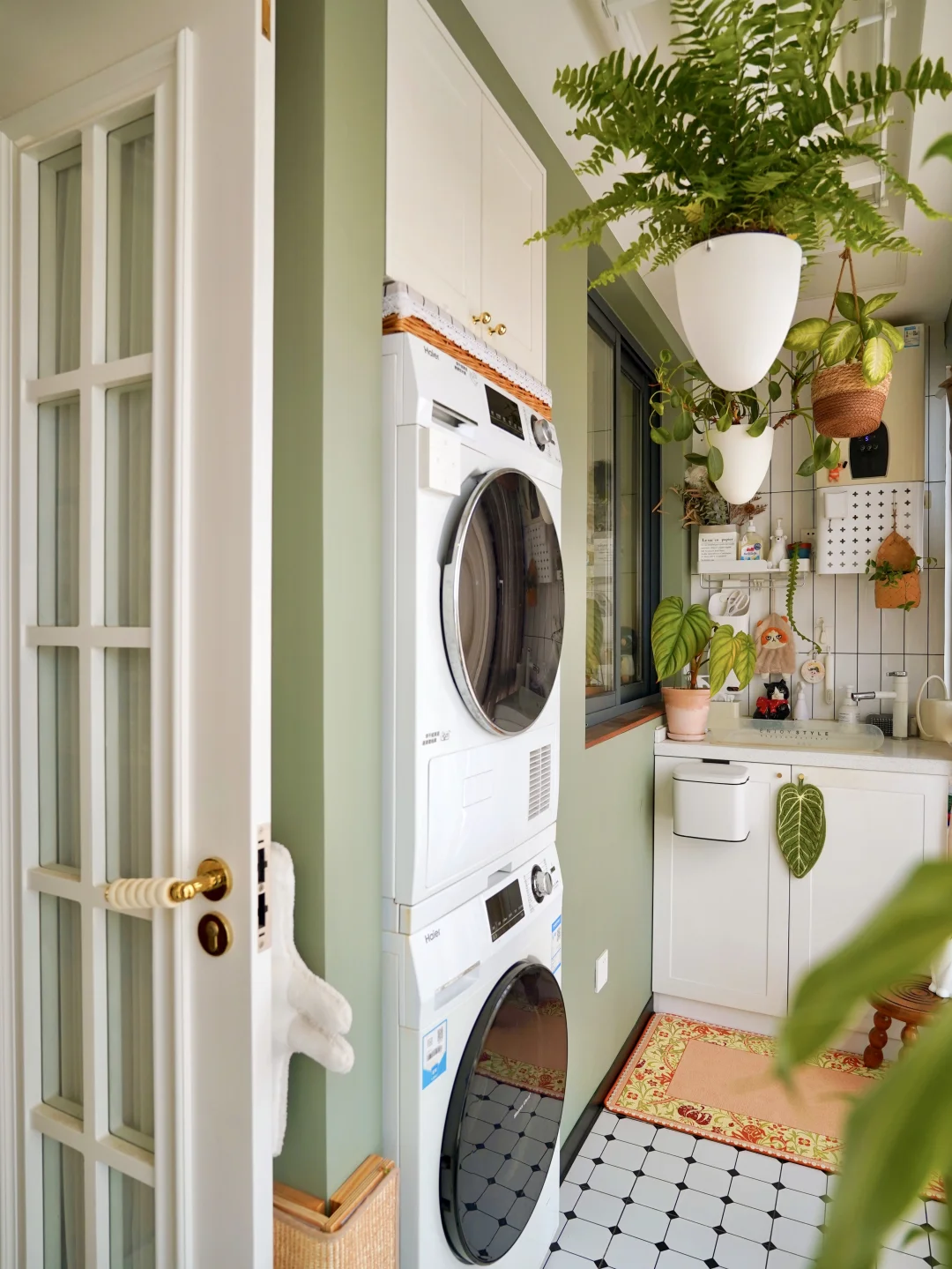 1m不到的宽度承载了洗衣区和绿植角