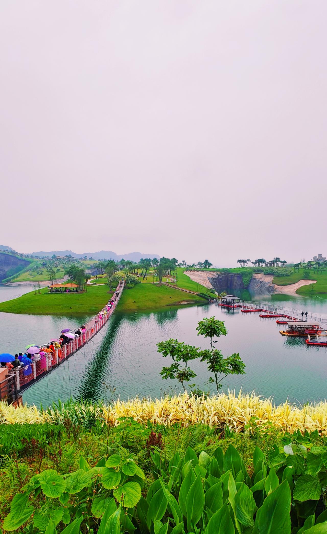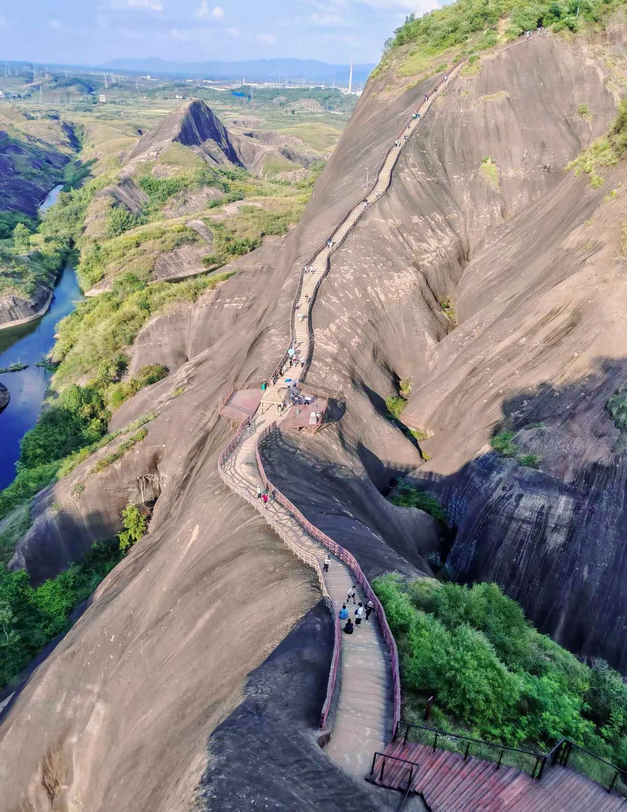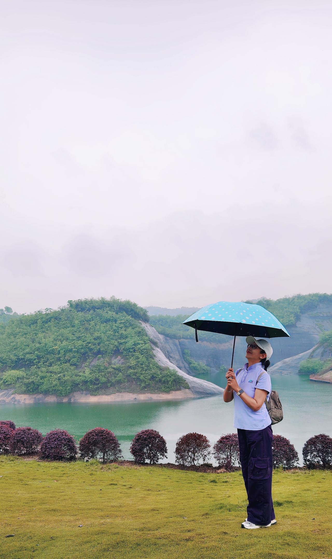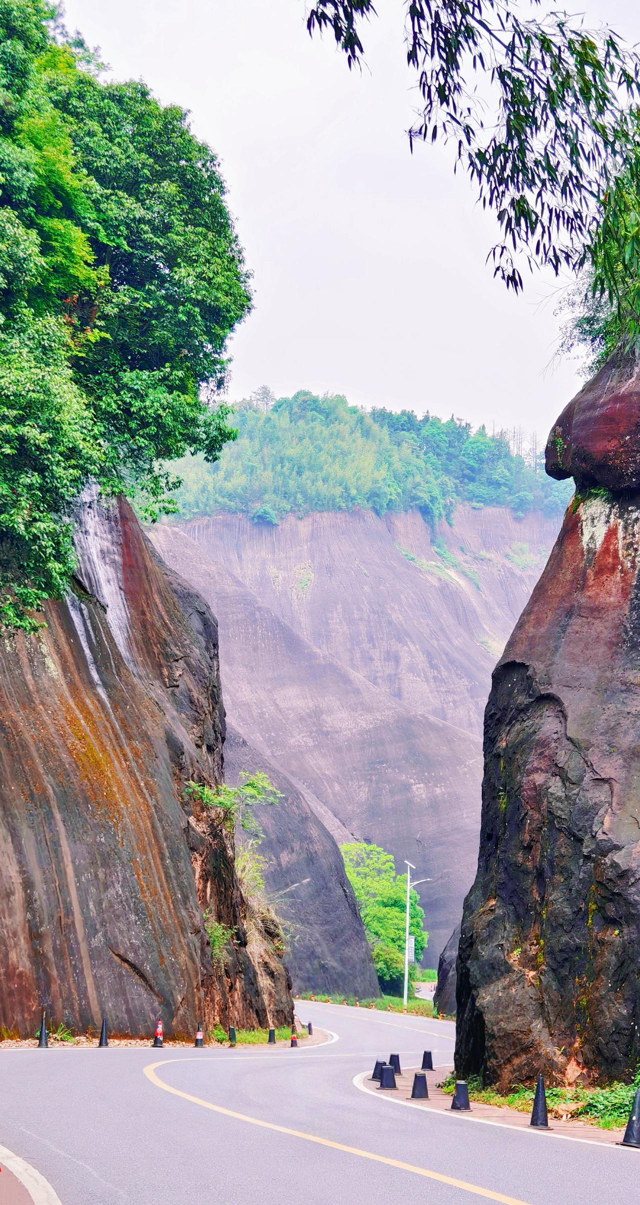 今天冒着小雨,行走在险峻的龙脊山之上,一边是陡峭的红崖,一边是清幽的湖水,步步皆是风景,眼界豁然开阔。