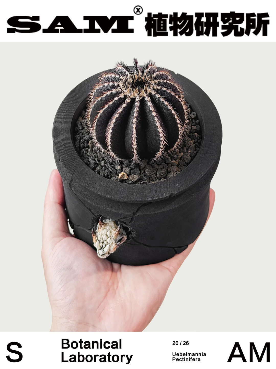 💚Tips:初见尤伯球,仿佛看见一颗迷你版的土耳其热气球从山岩腾空而起。这种来自于巴西深山石缝中的物种堪称大自然的奇迹,更像是自然对“结构美”的一次极致表达。SAM非常喜欢它极度规整的形态,茎或球或柱,棱线如数学家绘制的函数曲线般精准,刺座连成的亮白/金/黑线条,像是星球表面的神秘经纬。棱脊如刀刻般锋利凸起,刺座密布着深褐色带黑尖的椭齿状刺,恍若中世纪骑士的铠甲。细密的白色绒毛在刺间若隐若现,又添了几分温柔。而那种接近黑巧克力般的暗色调,在不同角度还会呈现一些丝绒质感的反光细节,也让它在一众鲜亮的多肉植物中显得克制而高级,带着一点不动声色的张力。