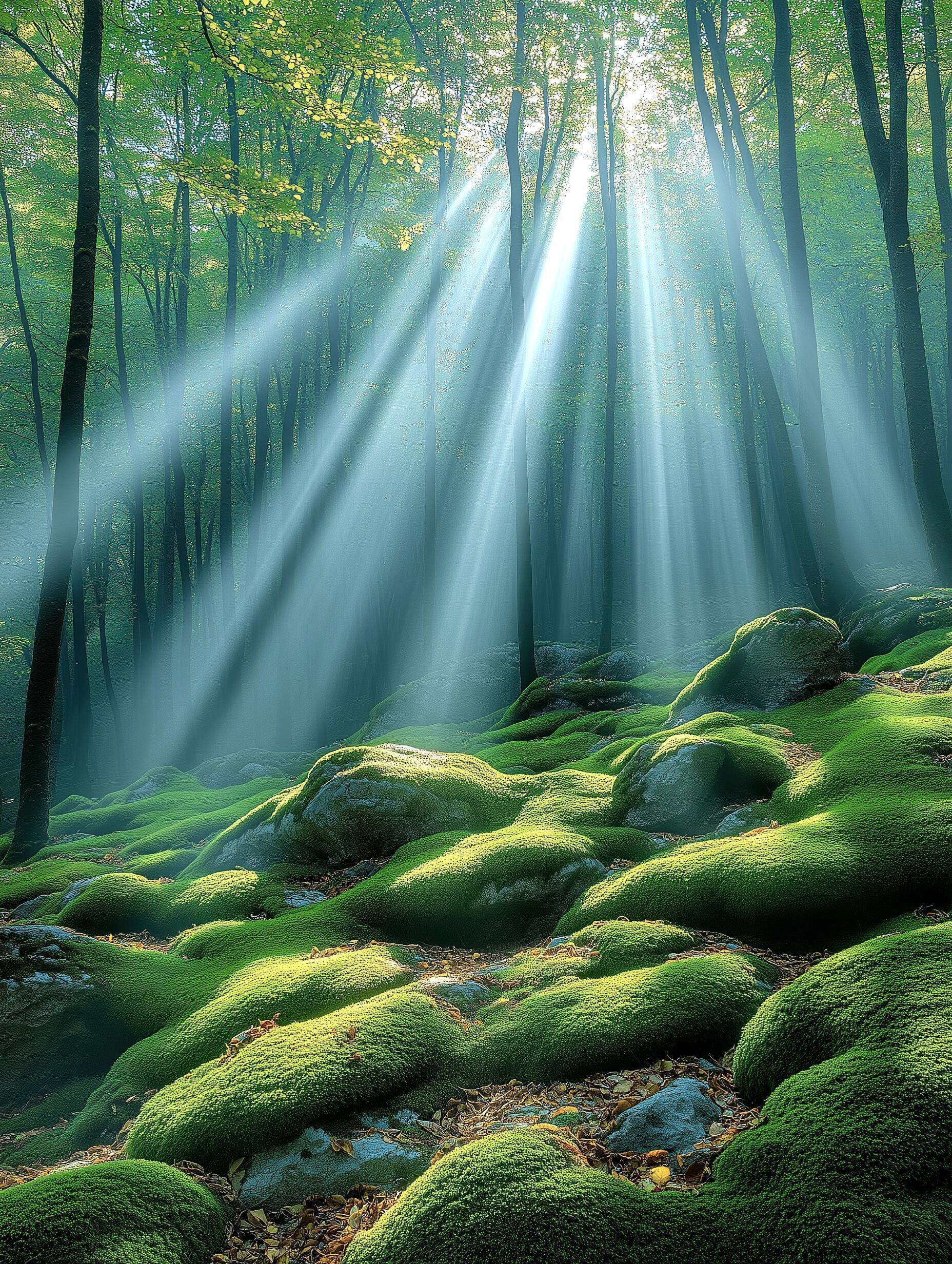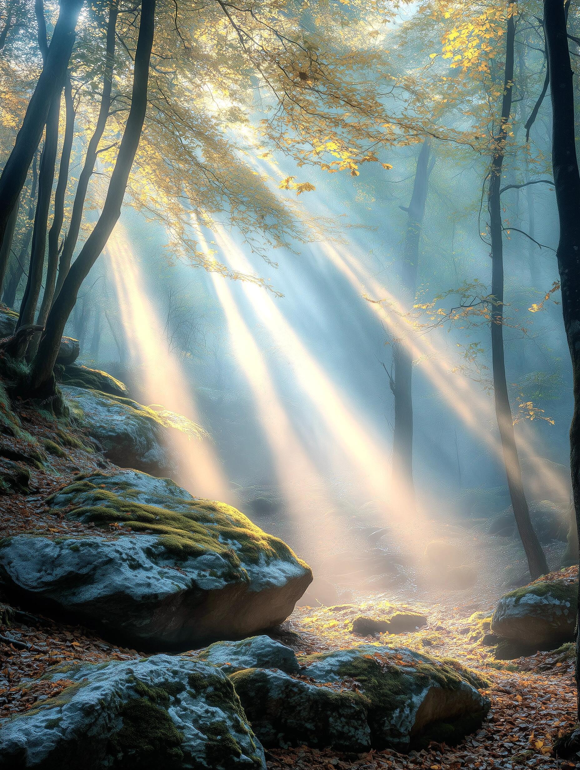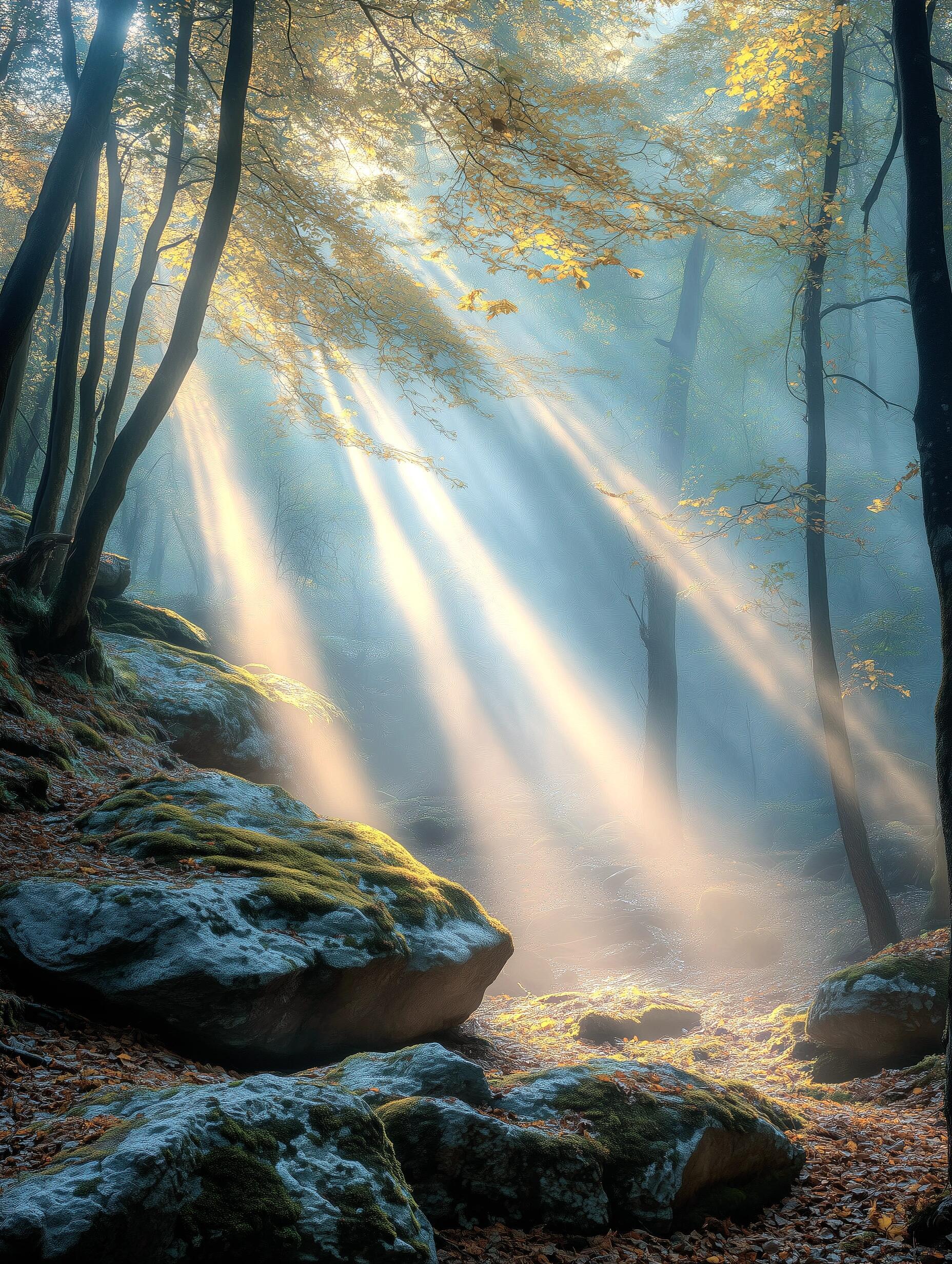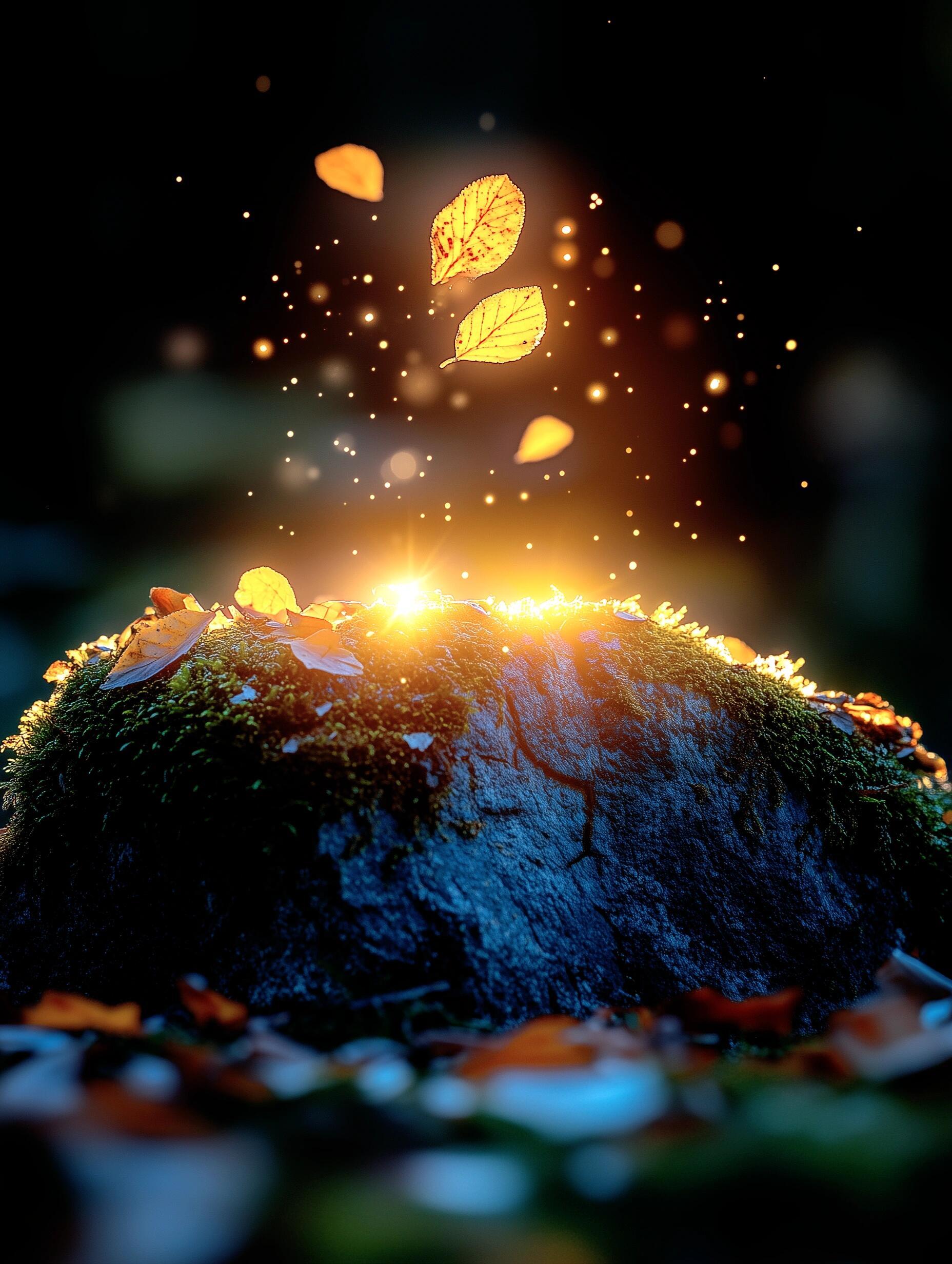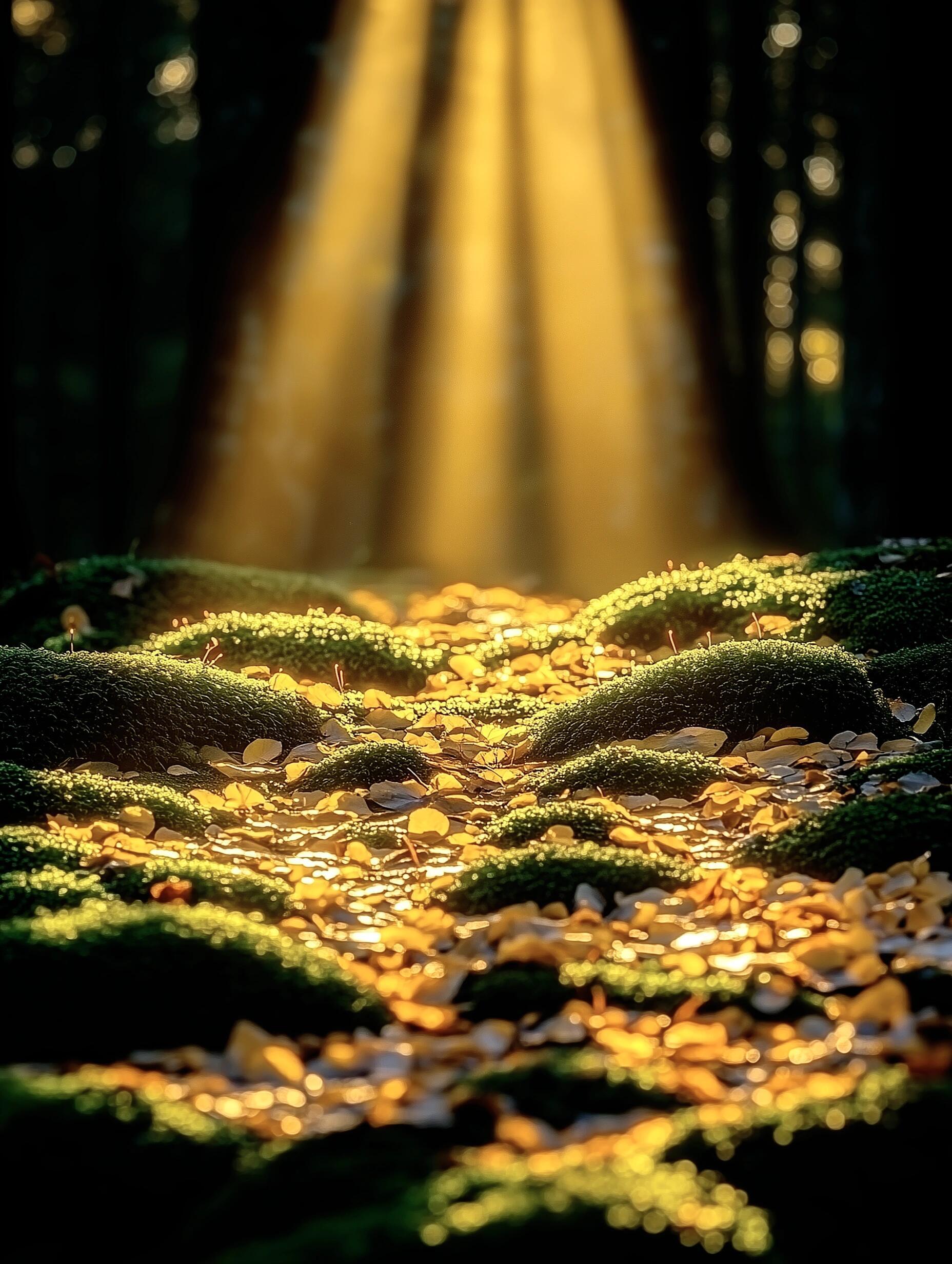 即使微光,也能照亮生长的方向🍂✨🌞 阳光穿过秋日的林间,在苔藓拥抱的石头上跳
