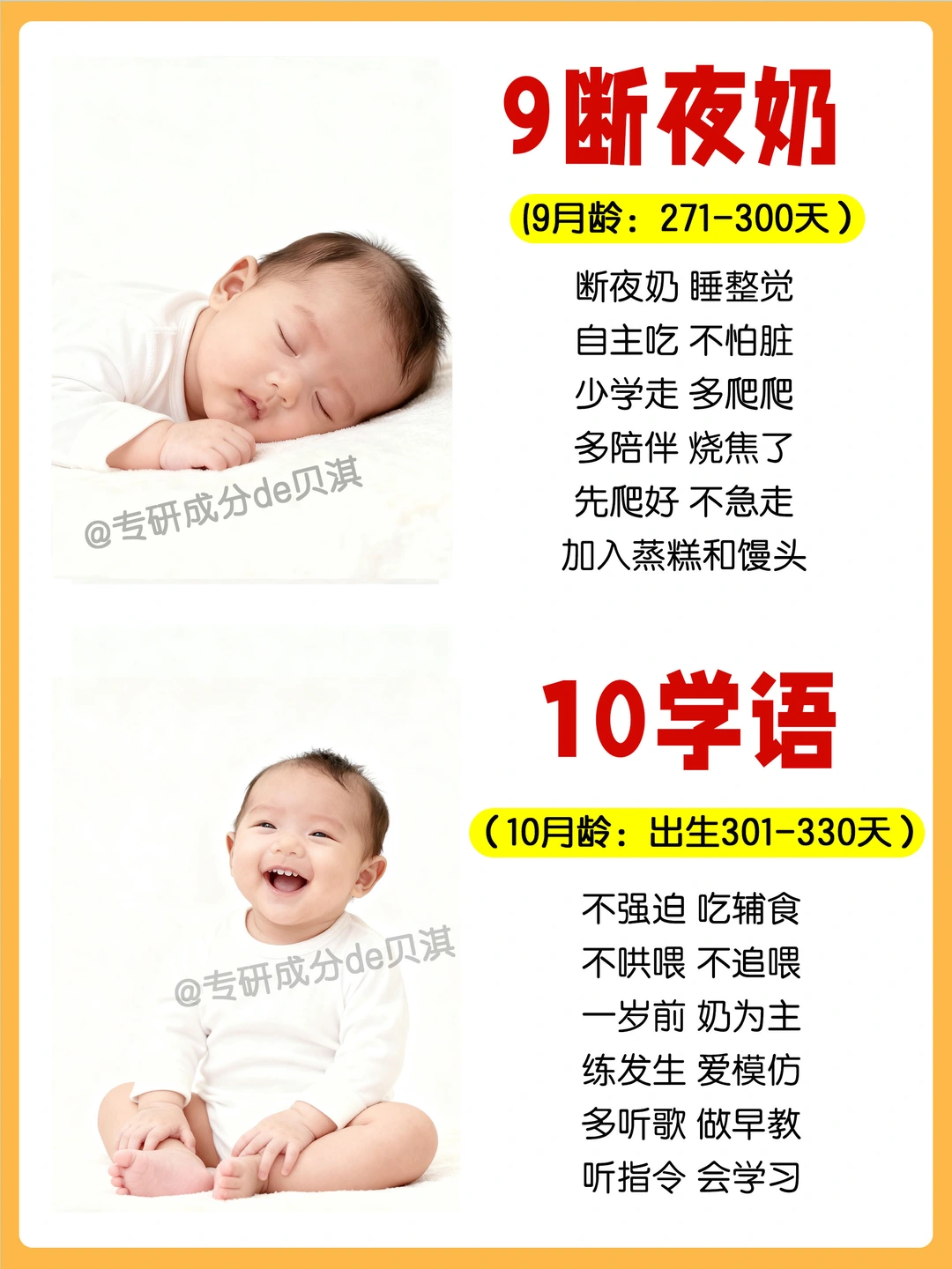你就会发现[向右R]只要顺应月龄规律发展去带养,宝宝真的会好带很多!