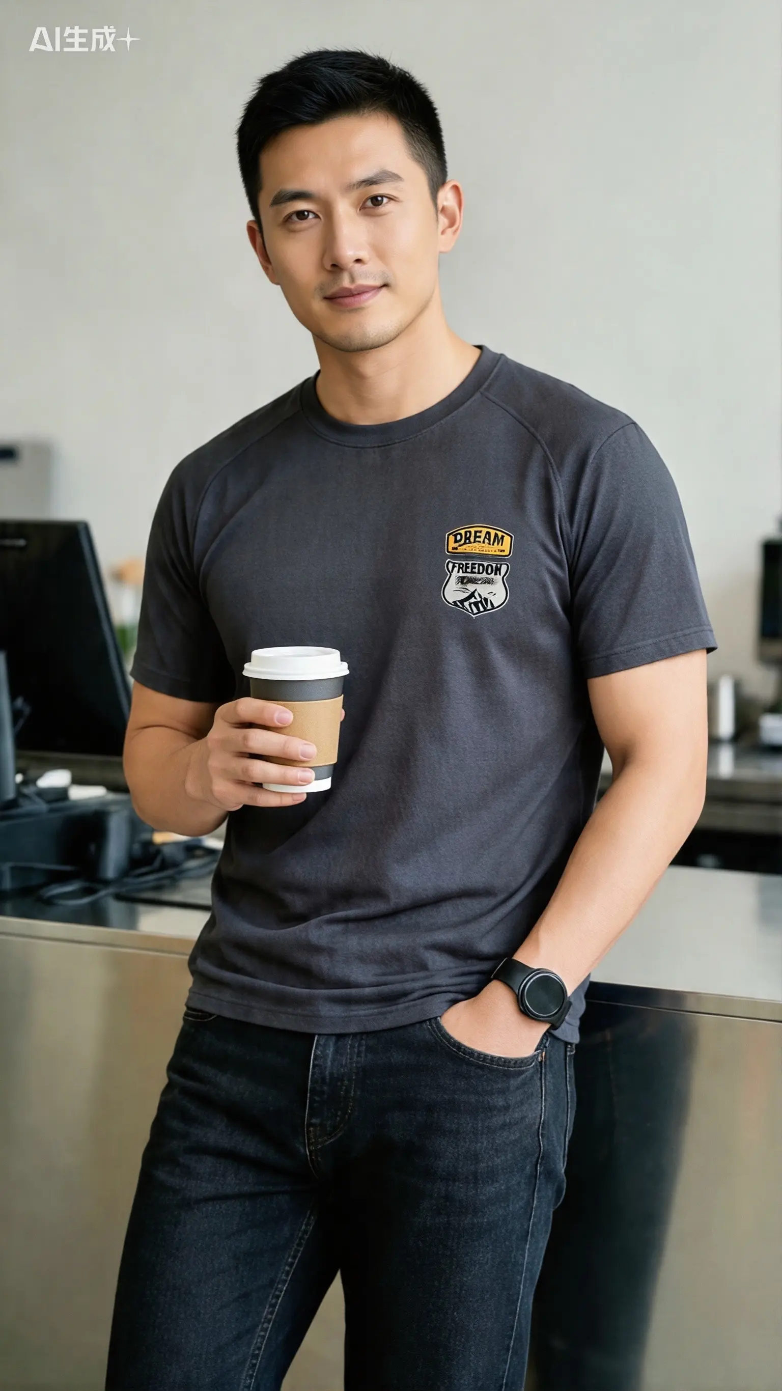 今天逛街的时候,看到一个女生,她穿着休闲,手拿小包,很时尚。她上身穿了件宽松的白