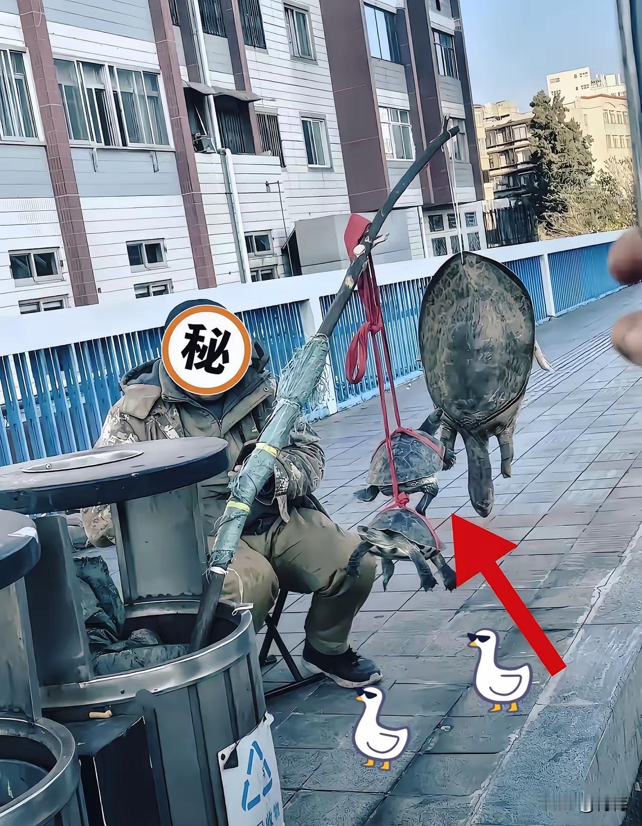 一群穿着迷彩服的大爷,手里攥着根破木棍,红绳吊着几只大王八,往十字路口一杵,站一整天。