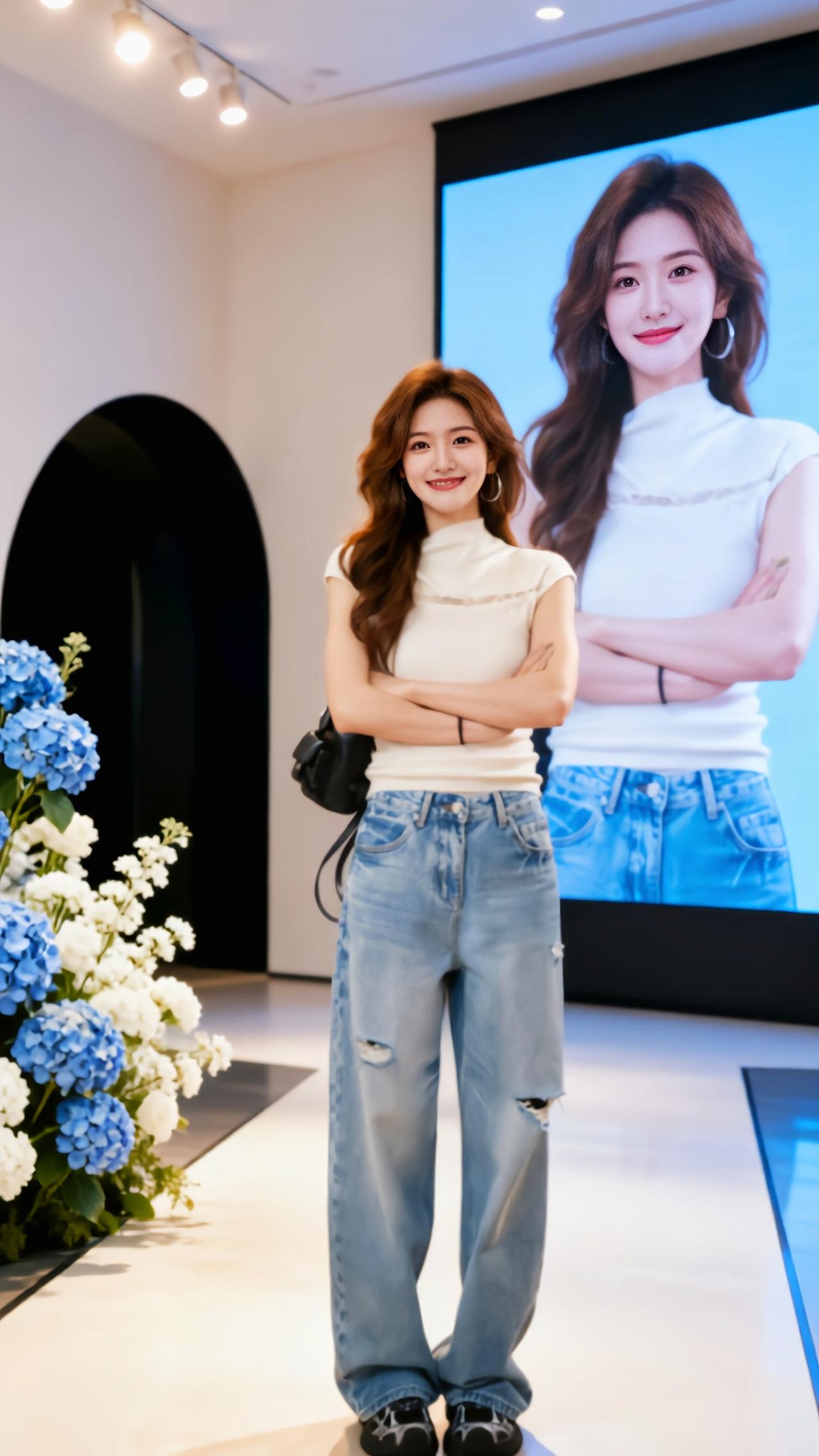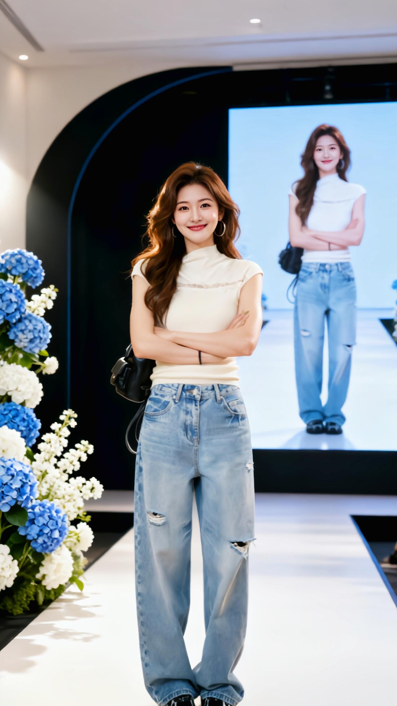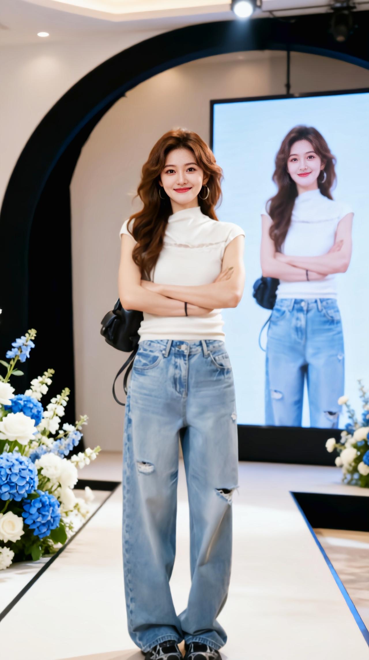 浅蓝色高腰阔腿牛仔裤 牛仔阔腿裤的百变魅力 直筒显瘦秀场同款长裤 同款显瘦高腰阔