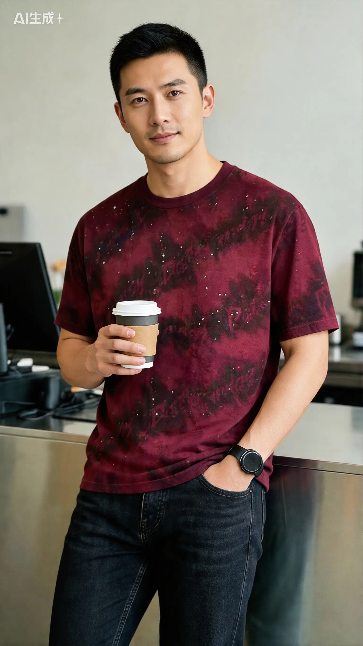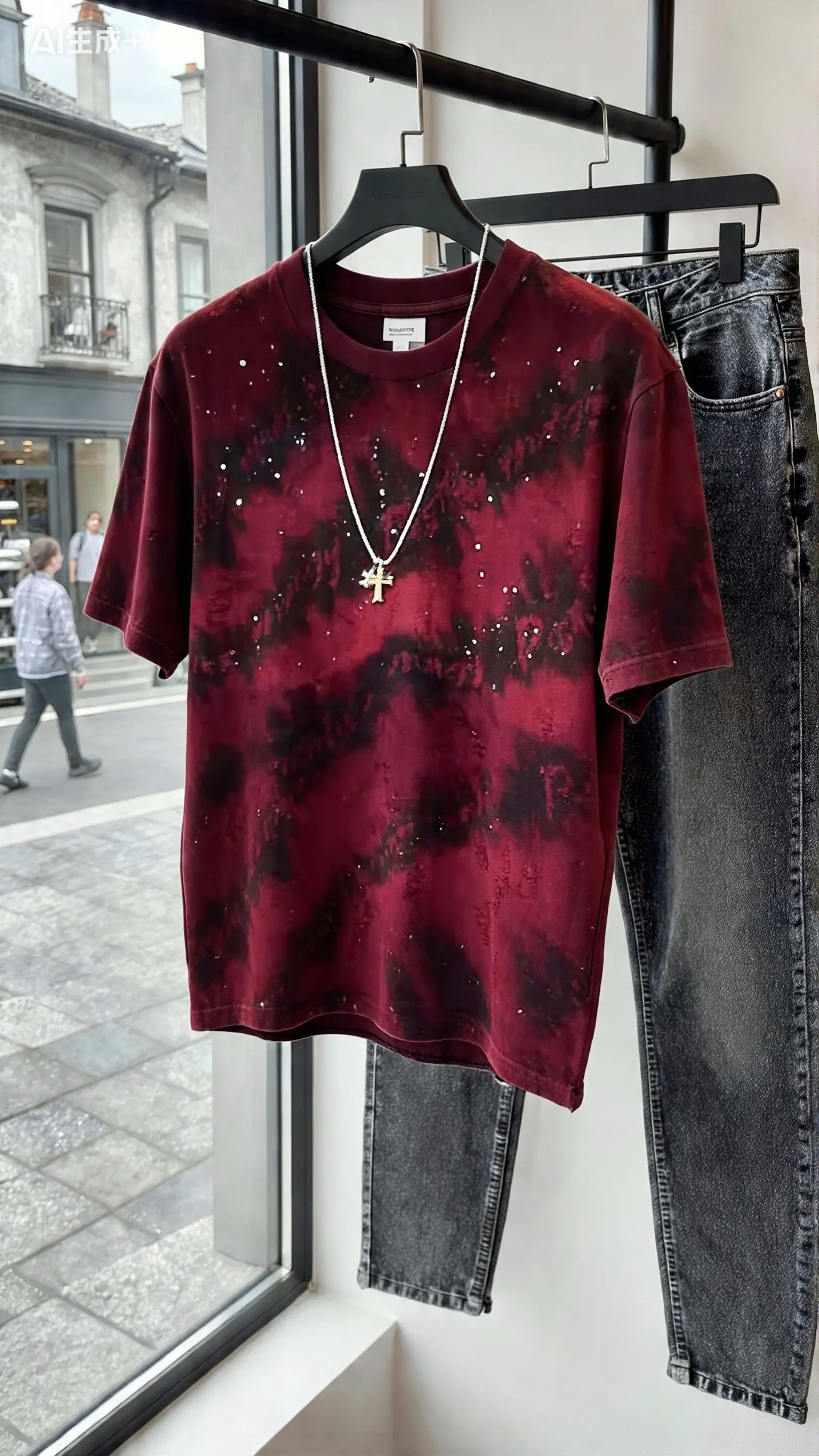 满天星烫钻破洞上衣圆领休闲短袖男半袖打底衫