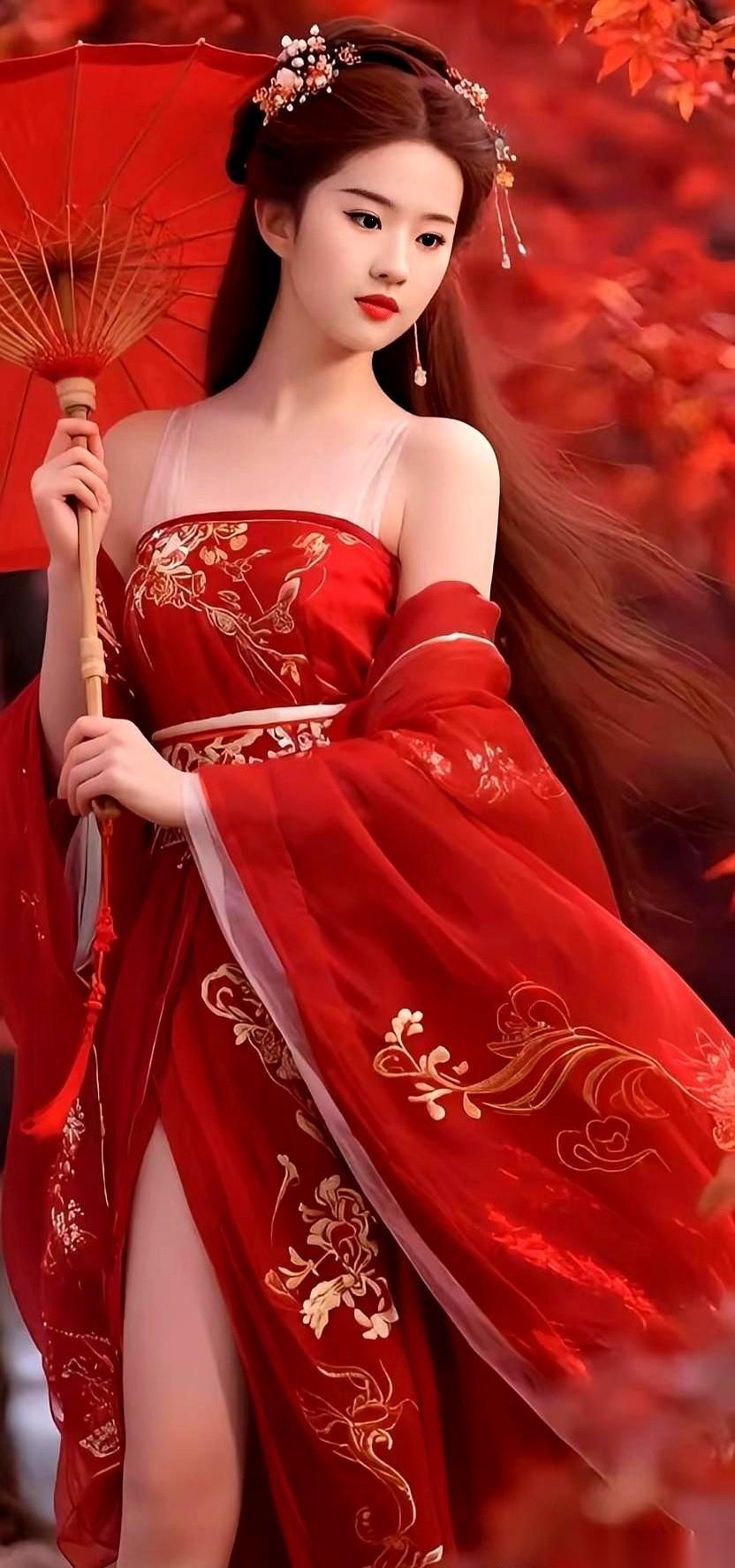 没有浓妆艳抹,甚至连眼神都没有刻意对焦。她只是微微垂下眉眼,手指轻轻搭在裙摆上,这种不争不抢的劲儿,反而把“温婉”两个字给写活了。
